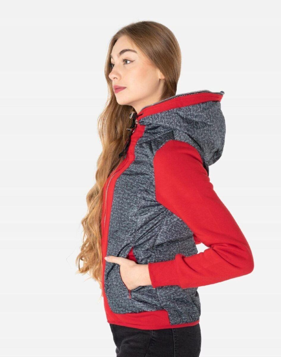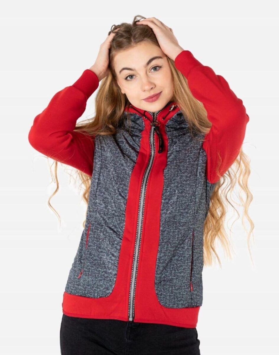 Sportowa Bluza Damska Zasuwana na Zamek z Efektownym Podwójnie Ocieplonym Kapturem