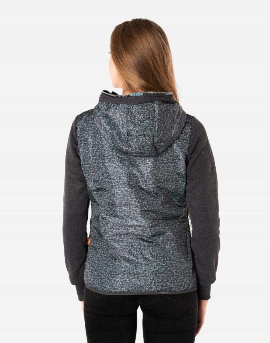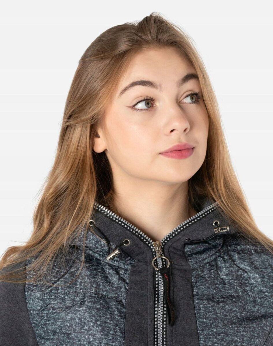 Znakomicie sprawdzi się w chłodniejsze dni a praktyczny podwójnie ocieplony puchem syntetycznym i bawełnianą podszewką kaptur skutecznie ochroni Twoją głowę przed deszczem, wiatrem i chłodem. Bluza jest unikalnym połączeniem wysokiej jakości tkaniny bawełnianej (rękawy) i tkaniny poliestrowej (pozostała część bluzy), zapewniając wygodę i komfort termiczny użytkowania, nawet w mniej sprzyjających warunkach pogodowych. Tkanina poliestrowa jest 100% wiatroszczelna i posiada wykończenie typu Water Repellency, które zapobiega nasączeniu warstwy zewnętrznej wodą. Bluza jest lekko ocieplona puchem syntetycznym i zasuwana w całości wraz z kapturem na zamek błyskawiczny. Posiada dwie wpuszczane kieszenie na dłonie zasuwane na kryte zamki błyskawiczne. Dół bluzy oraz rękawy zakończone są elastycznym ściągaczem co pozwala na precyzyjne dopasowanie do ciała i zapobiega utracie ciepła. Wewnętrzna strona bluzy wykończona jest materiałową podszewką. Długość midi, która z powodzeniem zakrywa części ciała wrażliwe na chłód jak plecy na wysokości nerek i pośladki. Fason dostosowany do kobiecej budowy ciała doskonale wyprofilowana konstrukcja efektownie podkreślająca kobiecą sylwetkę. Modny układ pikowanych, lekko ocieplonych, wiatroszczelnych i wodoodpornych paneli został efektownie połączony z bawełnianymi rękawami tworząc najmodniejszy obecnie styl prezentowany szeroko na modowych blogach.