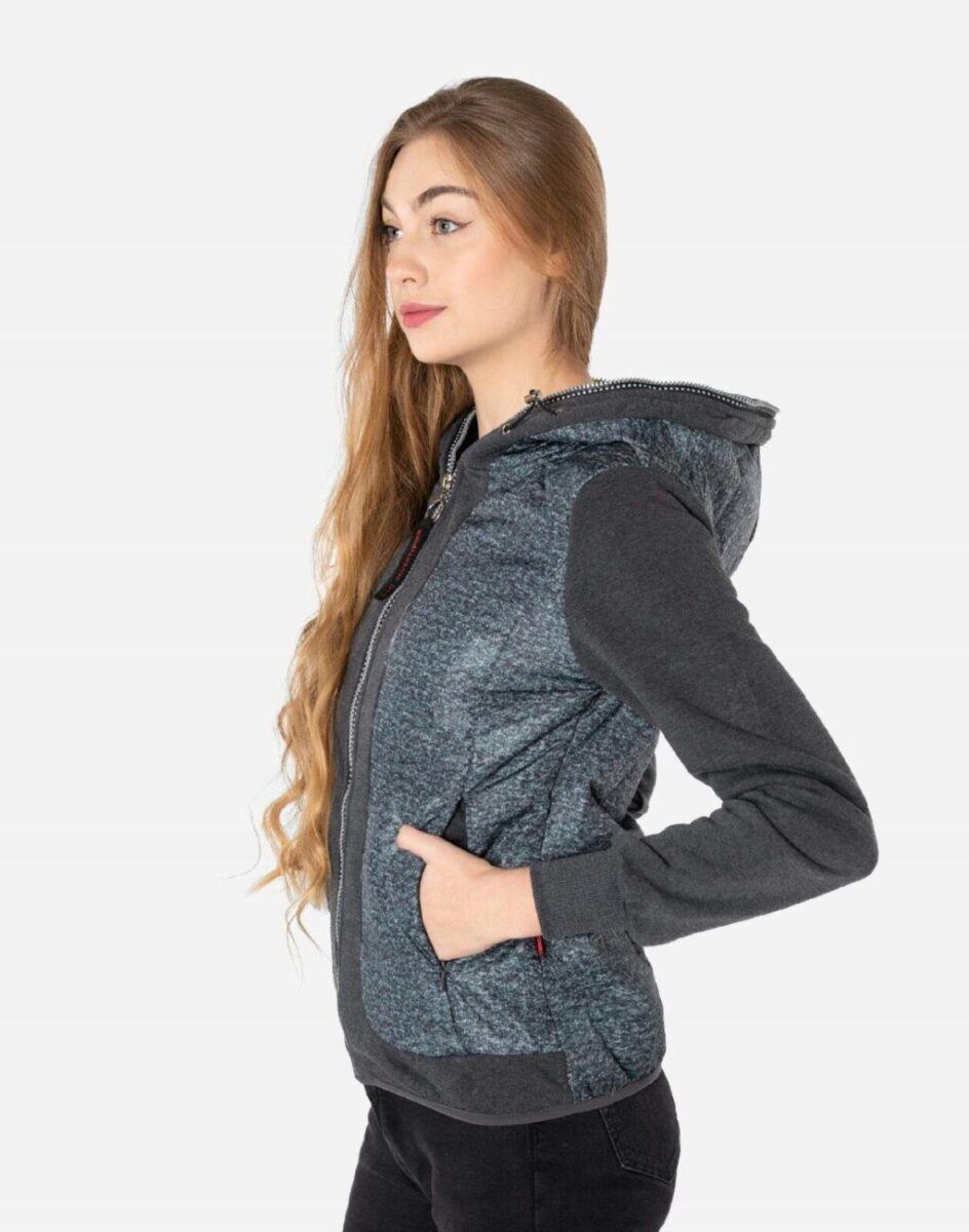 Sportowa Bluza Damska Zasuwana na Zamek z Efektownym Podwójnie Ocieplonym Kapturem