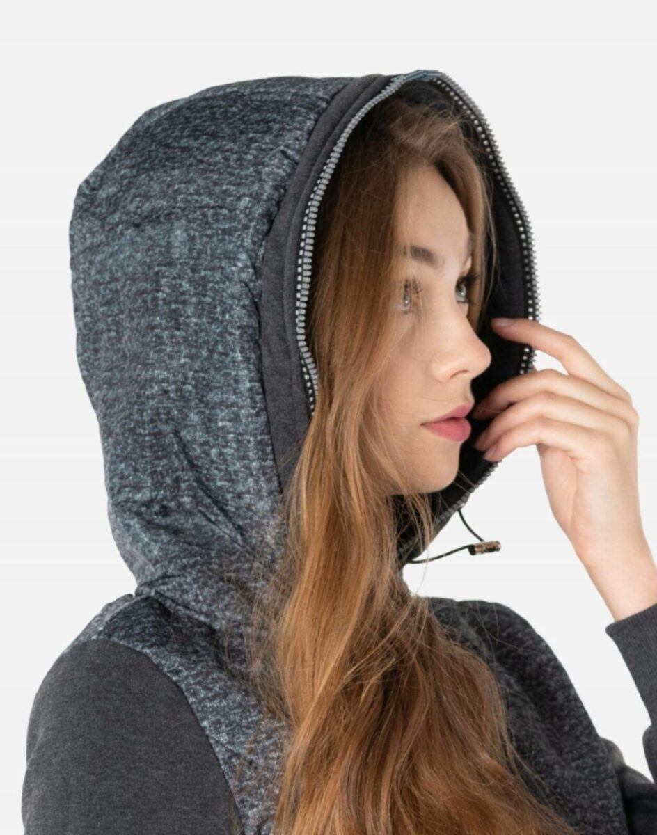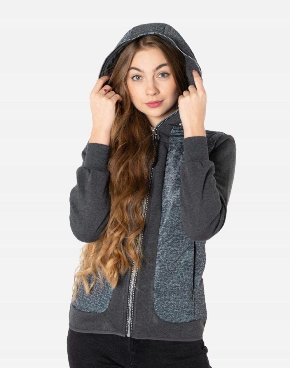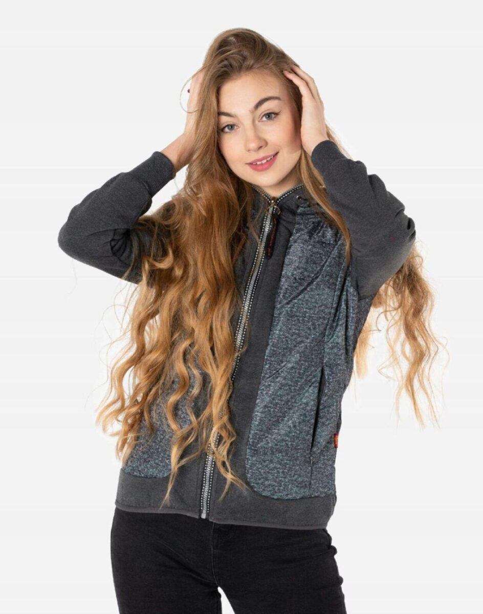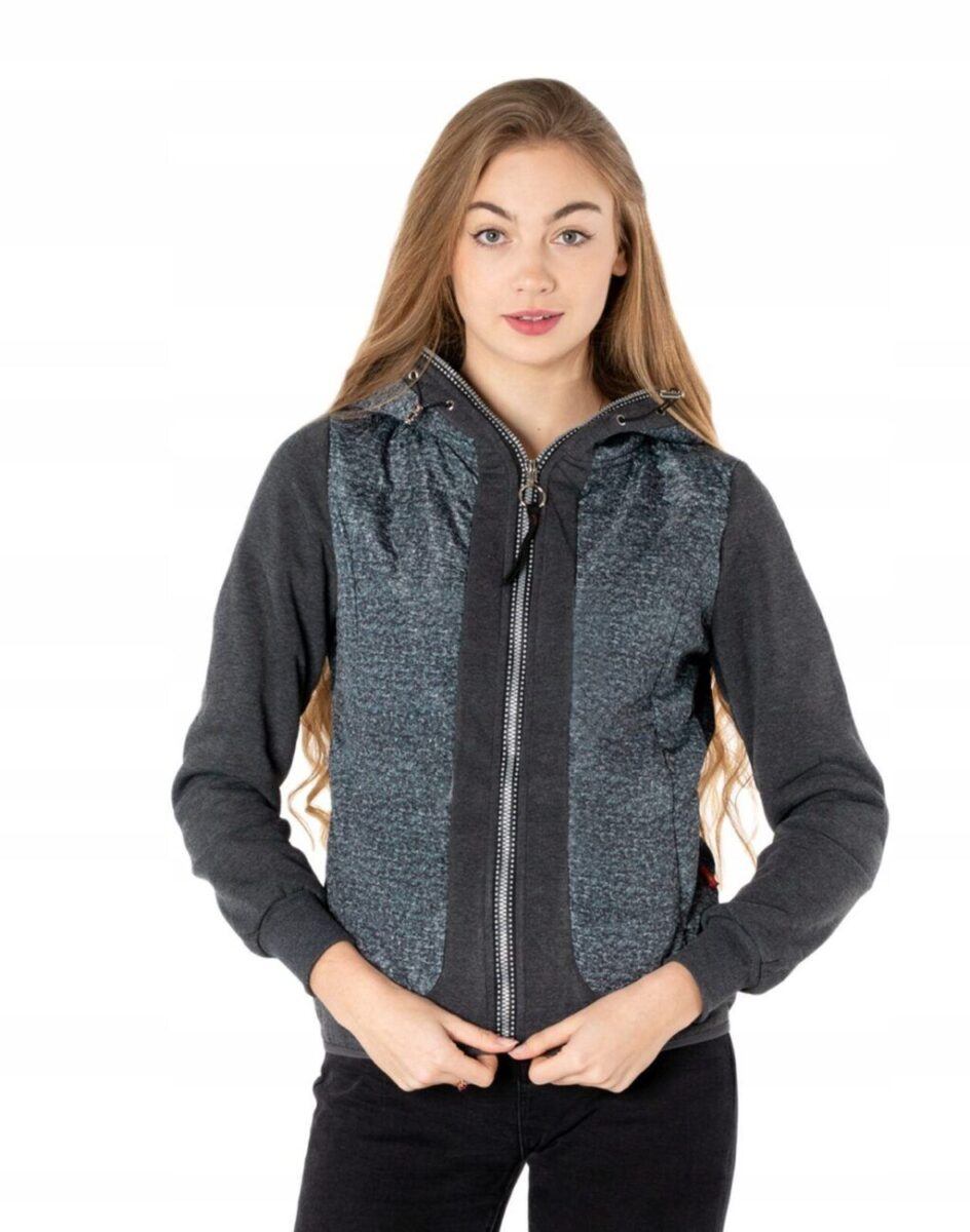 Sportowa Bluza Damska Zasuwana na Zamek z Efektownym Podwójnie Ocieplonym Kapturem