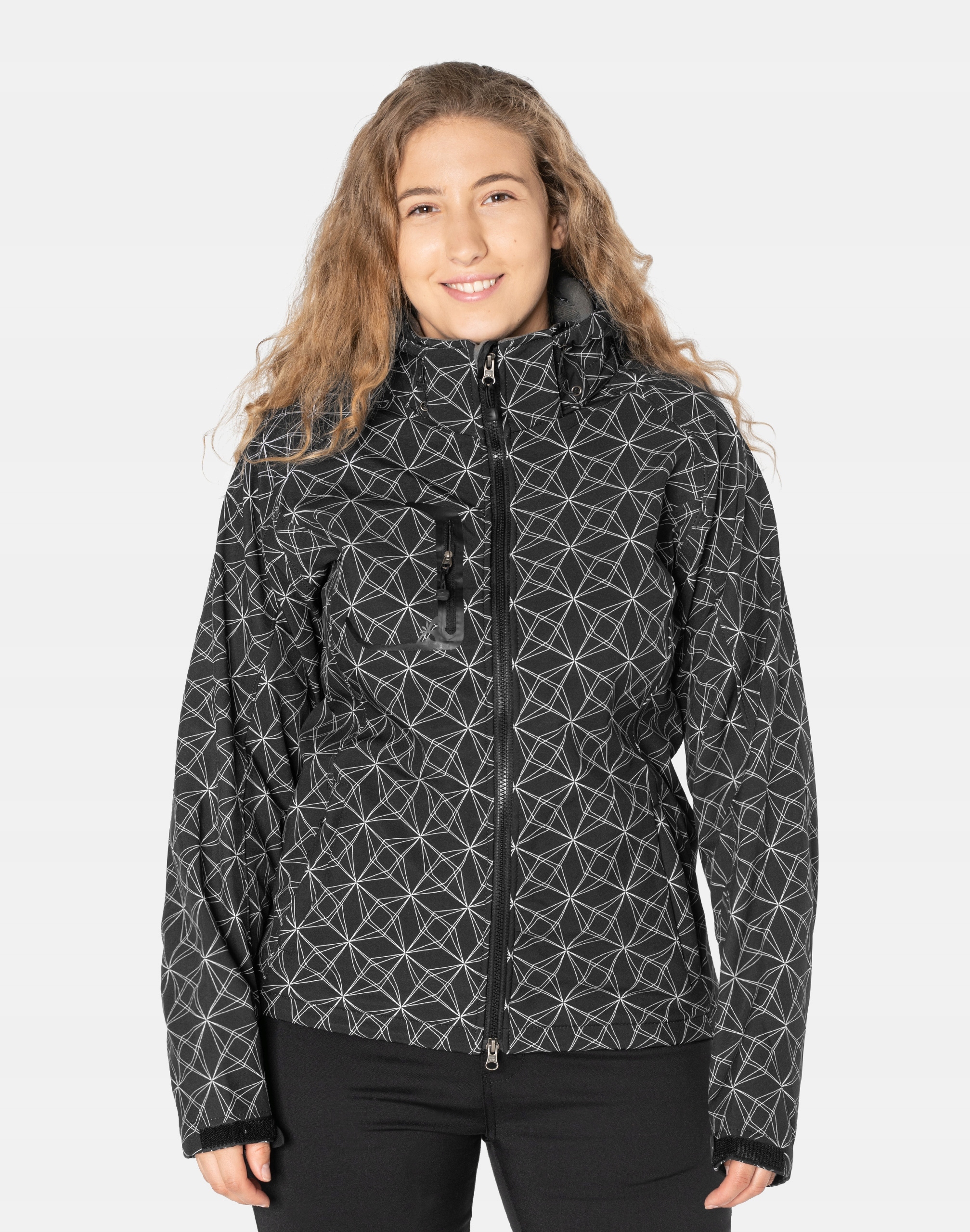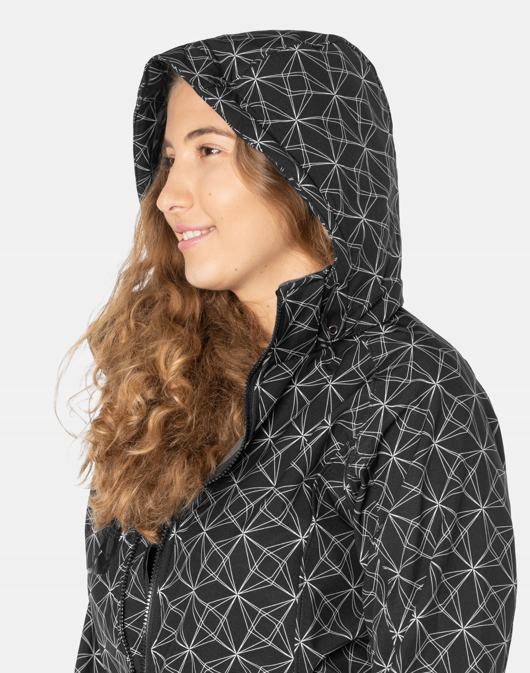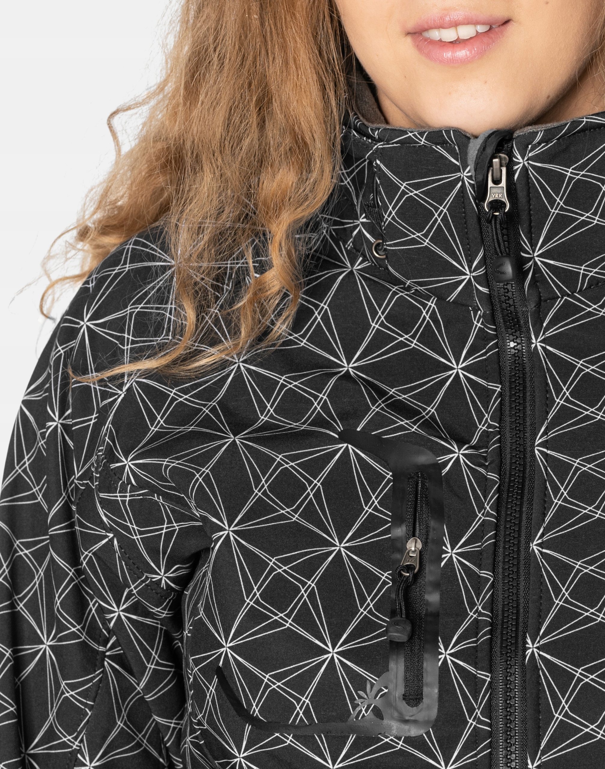 Kurtka jest wodoodporna, wiatroszczelna i zapinana jest w całości na zamek błyskawiczny. Aby uniknąć przenikania wody do wnętrza kurtki szwy i przeszycia zostały podklejone specjalną taśmą dzięki czemu są w 100% wodoszczelne. Praktyczny odpinany na zamek błyskawiczny i ocieplony mikropolarową podszewką kaptur posiada możliwość połączenia go z za pomocą rzepów z kołnierzem oraz regulacji jego wielkości i dopasowania Osłoni Twoją głowę przed deszczem, wiatrem i chłodem. Wysoki kołnierz/stójka skutecznie chroni podbródek i szyję a często zastępuje nawet szalik co jest bardzo wygodne. Kurtka posiada dwie kieszenie przednie na dłonie, zasuwane na wodoodporne zamki błyskawiczne. Na prawej piersi pojedyncza kieszeń zasuwana również na wodoodporny zamek. Wewnątrz dwie kieszenie naszywane. Ściągacze regulacyjne na dole kurtki oraz przy kapturze z gumką i stoperem, a w rękawach regulowane mankiety na rzepy pozwalają na precyzyjne dopasowanie kurtki do ciała, co znacznie zapobiega utracie ciepła i skutecznie chroni przed podmuchami wiatru. Wewnętrzna strona kurtki jest lekko ocieplona przyjazną dla ciała mikropolarową podszewką. Talia zgrabnie podkreślona doskonale wyprofilowana konstrukcja. Modny sportowy krój efektownie podkreślający kobiecą sylwetkę prezentowany obecnie szeroko na modowych blogach.