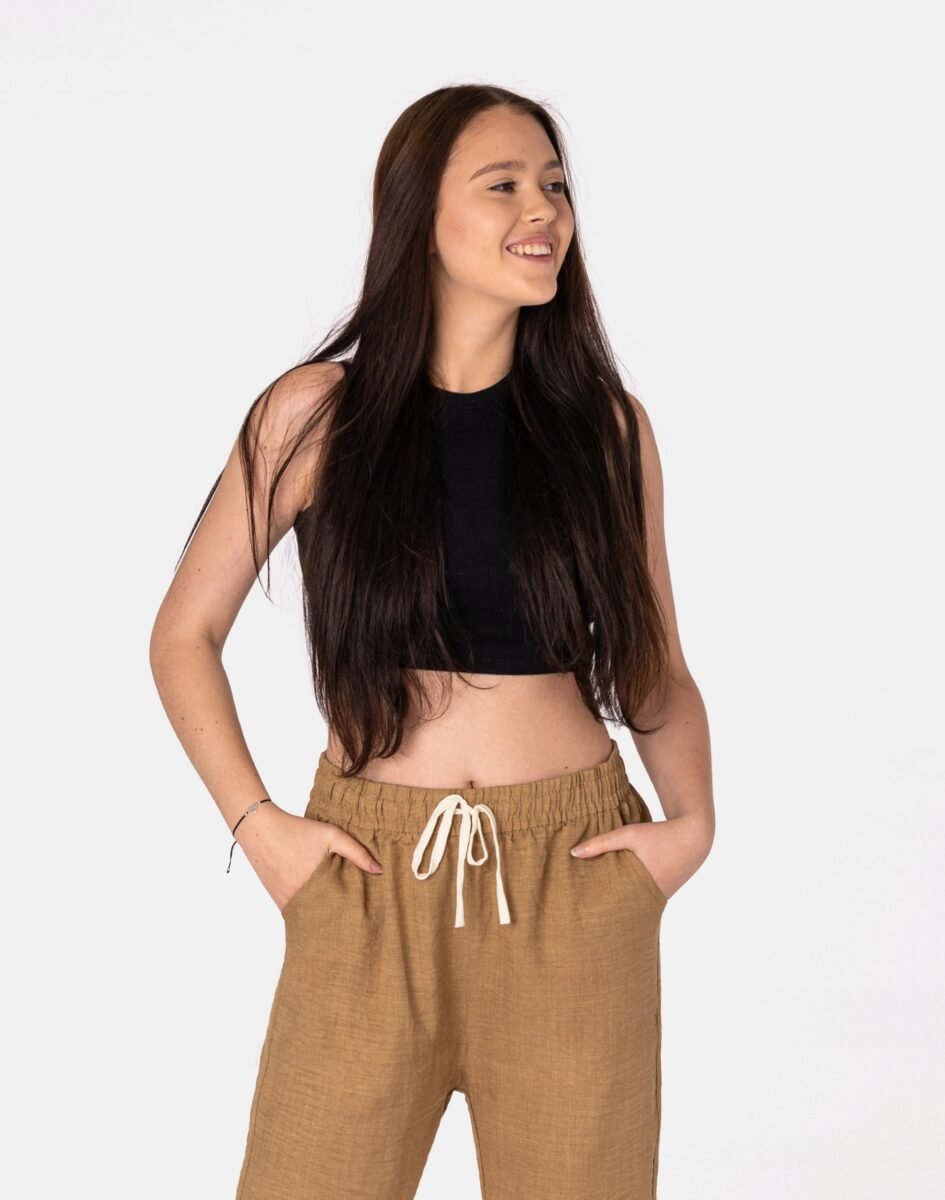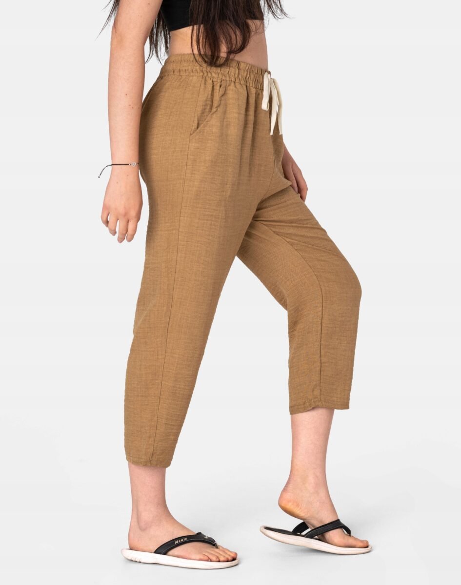 … ponadczasowe, lekkie i przewiewne, swobodne w biodrach, z luźnymi, nogawkami do połowy łydki, to wyjątkowo wygodne rozwiązanie na ciepłe, gorące dni wiosny i lata jak również niezbędny element wakacyjnej garderoby i udanych letnich stylizacji.