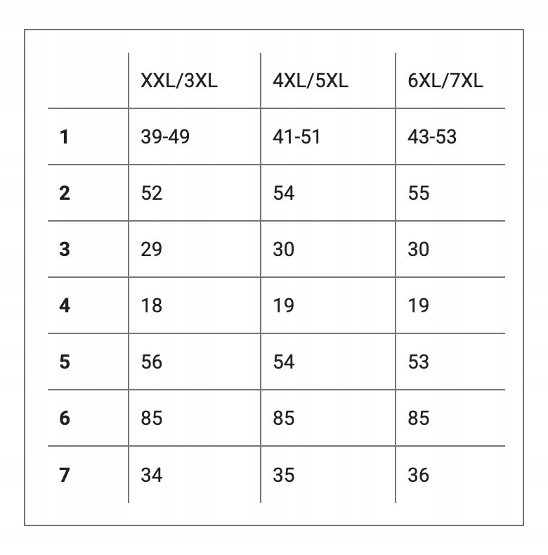 Proszę nie sugerować się rozmiarem podanym na metce przez producenta ( np: 2XL/3XL, 4XL/5XL czy 5XL/6XL) ponieważ różne firmy stosują bardzo różne oznaczenia rozmiaru na co my jako sprzedawcy na Allegro nie mamy żadnego wpływu. Najlepiej jest zmierzyć się dokładnie centymetrem a następnie porównać swoje wymiary z tabelą wymiarów podaną przez nas na aukcji i wybrać odpowiedni rozmiar.
