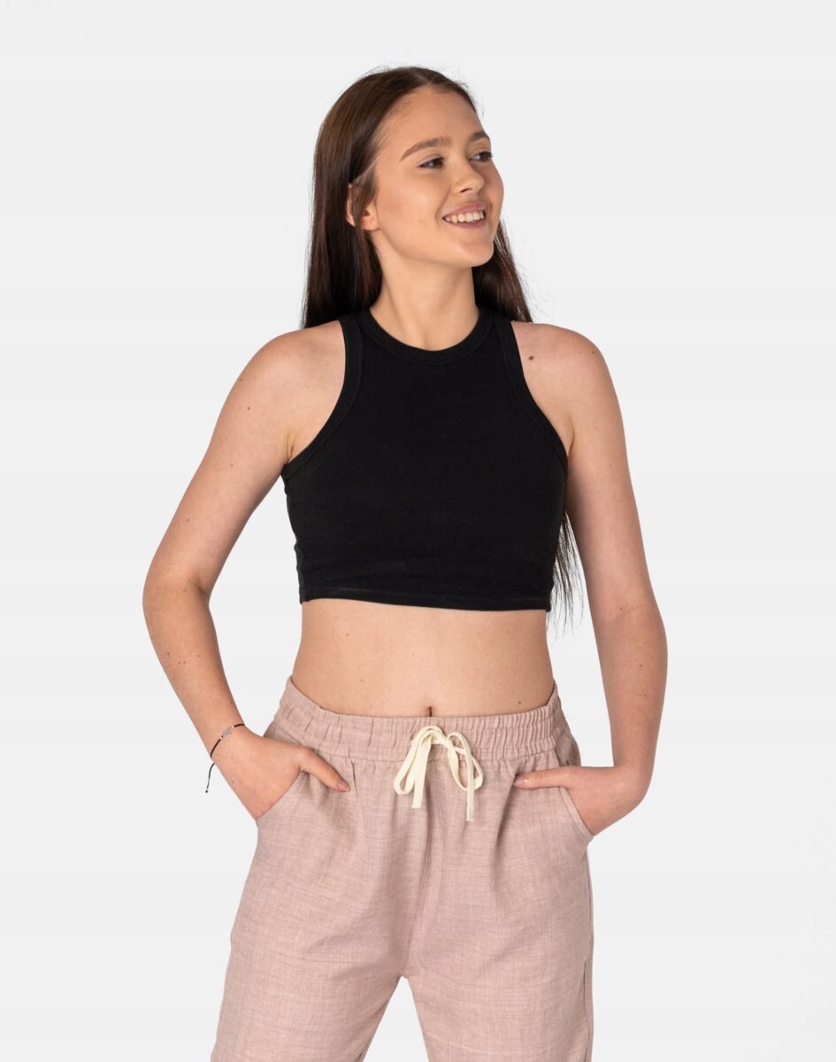 - Wygodny w noszeniu cienki, zwiewny i oddychający materiał przypominający len