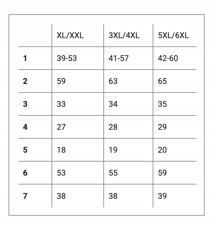 Proszę nie sugerować się rozmiarem podanym na metce przez producenta ( np: XL/2XL, 3XL/4XL czy 5XL/6XL) ponieważ różne firmy stosują bardzo różne oznaczenia rozmiaru na co my jako sprzedawcy na Allegro nie mamy żadnego wpływu. Najlepiej jest zmierzyć się dokładnie centymetrem a następnie porównać swoje wymiary z tabelą wymiarów podaną przez nas na aukcji i wybrać odpowiedni rozmiar.