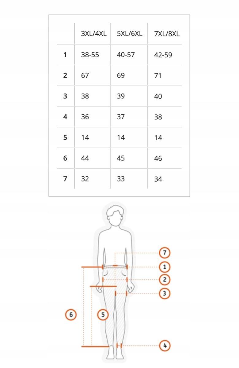 Proszę nie sugerować się rozmiarem podanym na metce przez producenta (np: 3XL/4XL, 5XL/6XL czy 7XL/8XL itp.) ponieważ różne firmy stosują bardzo różne oznaczenia rozmiaru na co my jako sprzedawcy na Allegro nie mamy żadnego wpływu. Najlepiej jest zmierzyć się dokładnie centymetrem a następnie porównać swoje wymiary z tabelą wymiarów podaną przez nas na aukcji i wybrać odpowiedni rozmiar.