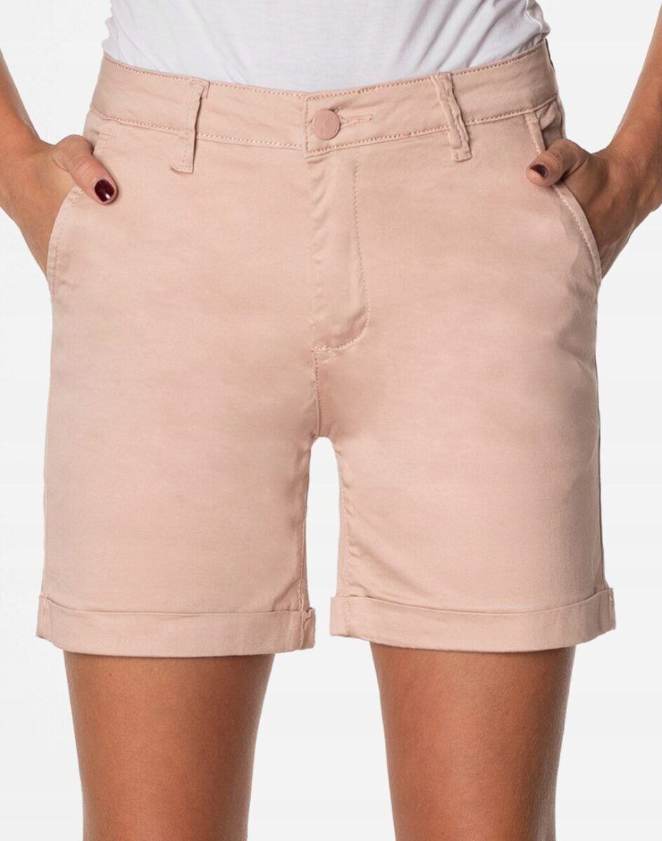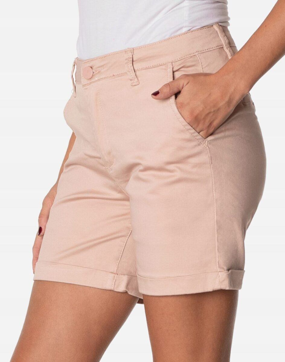 Uszyte z cienkiej tkaniny bawełnianej z niewielkim dodatkiem lycry (elastan), o sprawdzonym przez wiele zadowolonych klientek kroju, lekkie i wygodne idealne na co dzień jako element casualowego stroju czyniąc go lekkim i dostosowanym do wysokich temperatur. Naturalna bawełna gwarantuje świetną przepuszczalność powietrza, wchłanianie potu i oddychanie skóry a niewielki dodatek lycry sprawia, że spodenki są bardziej elastyczne co pozwala na pełną swobodę ruchów, daje wygodę przy siadaniu i zapewnia ogromny komfort noszenia. Wykonane według najnowszych trendów przewidzianych na ten sezon. Zapinane na kryty zamek błyskawiczny i guzik. Z przodu ukośne, klasyczne kieszenie na dłonie z tyłu imitacje kieszeni wpuszczanych. W pasie szlufki umożliwiające stylizacje z paskiem.