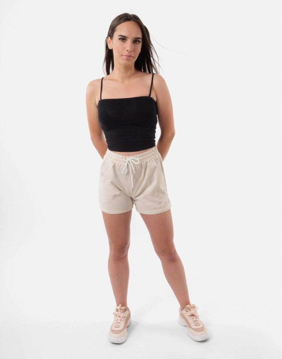 Od kilku sezonów absolutnym hitem podczas słonecznych dni są eleganckie szorty damskie w stylową kratkę. Niezmiennie modne, bardzo kobiece i kojarzone z dobrym gustem. Wyjątkowo lekkie i przewiewne, z podwyższonym stanem i krótką nogawką, to jeden z najczęściej wybieranych na ciepłe i gorące dni wiosny i lata modeli spodenek przez kobiety ceniące szykowne rozwiązania. Dobry i sprawdzony krój spodenek nie ogranicza swobody ruchów, a odpowiednia na wysokie temperatury gramatura tkaniny pozytywnie wpływa na komfort użytkowania. W talii posiadają szeroki elastyczny pas ściągający oraz dodatkowo wpuszczoną w pasek taśmę regulacyjną z możliwością jej zawiązywania. Na bokach mają dwie wpuszczane zaokrąglone kieszonki na dłonie. Idealne na co dzień jako element casualowego stroju czyniąc go lekkim i dostosowanym do wysokich temperatur.
