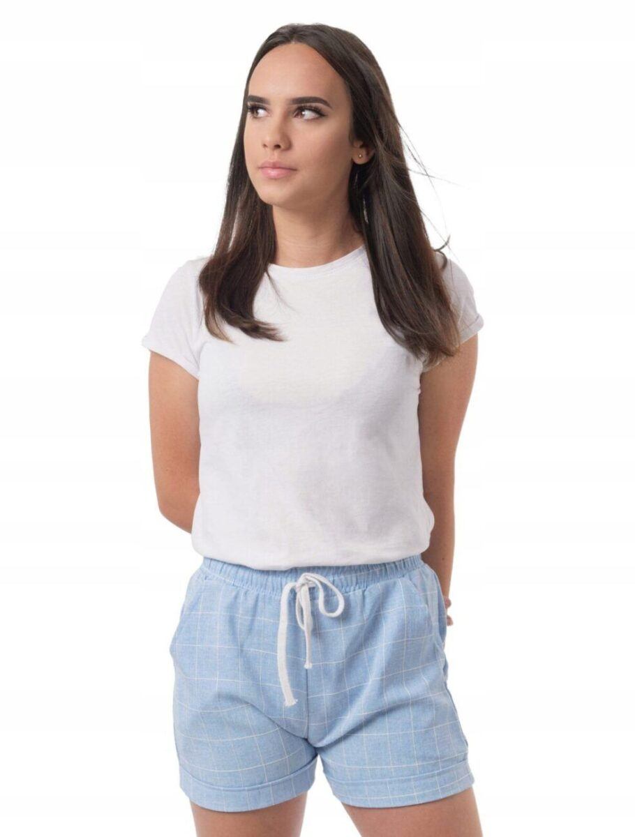 Od kilku sezonów absolutnym hitem podczas słonecznych dni są eleganckie szorty damskie w stylową kratkę. Niezmiennie modne, bardzo kobiece i kojarzone z dobrym gustem. Wyjątkowo lekkie i przewiewne, z podwyższonym stanem i krótką nogawką, to jeden z najczęściej wybieranych na ciepłe i gorące dni wiosny i lata modeli spodenek przez kobiety ceniące szykowne rozwiązania. Dobry i sprawdzony krój spodenek nie ogranicza swobody ruchów, a odpowiednia na wysokie temperatury gramatura tkaniny pozytywnie wpływa na komfort użytkowania. W talii posiadają szeroki elastyczny pas ściągający oraz dodatkowo wpuszczoną w pasek taśmę regulacyjną z możliwością jej zawiązywania. Na bokach mają dwie wpuszczane zaokrąglone kieszonki na dłonie. Idealne na co dzień jako element casualowego stroju czyniąc go lekkim i dostosowanym do wysokich temperatur.