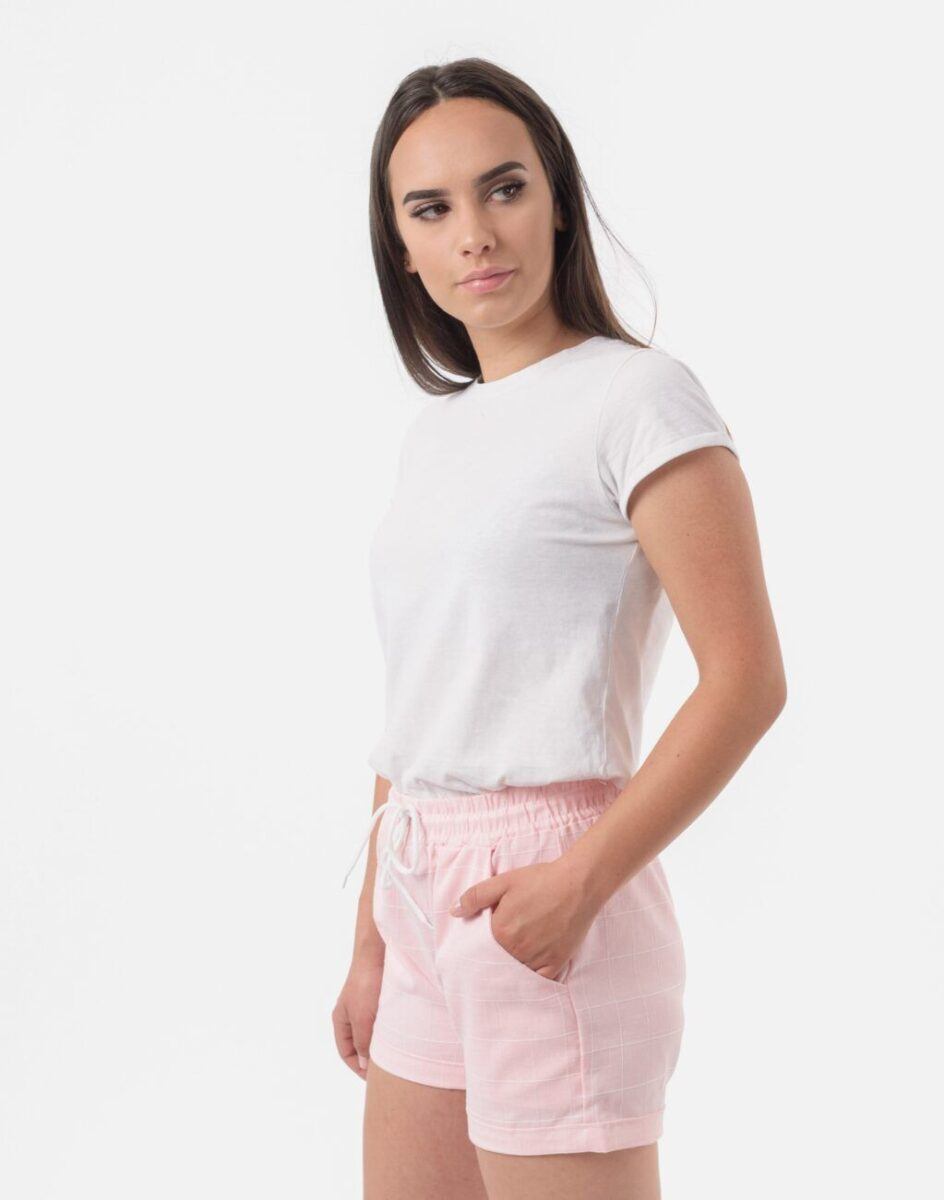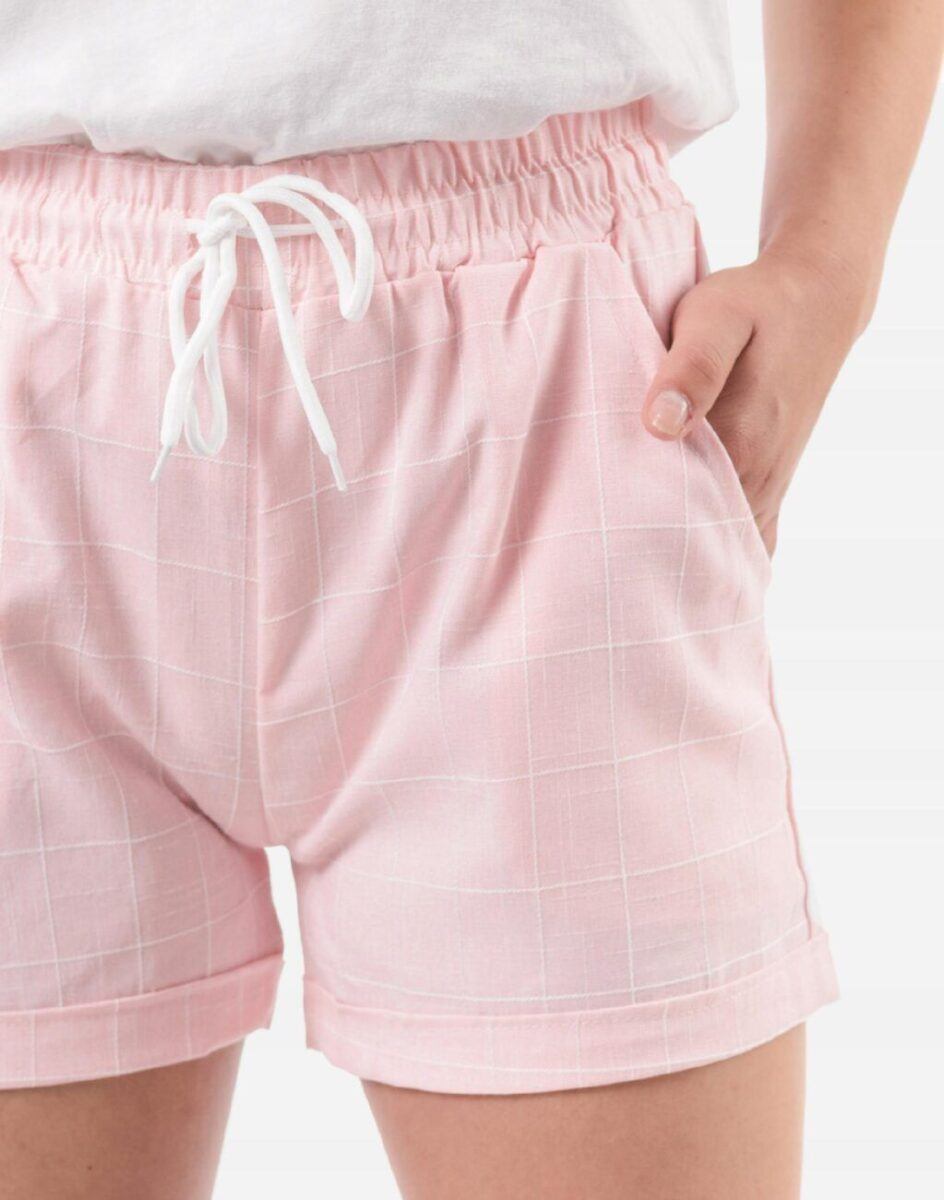 Od kilku sezonów absolutnym hitem podczas słonecznych dni są eleganckie szorty damskie w stylową kratkę. Niezmiennie modne, bardzo kobiece i kojarzone z dobrym gustem. Wyjątkowo lekkie i przewiewne, z podwyższonym stanem i krótką nogawką, to jeden z najczęściej wybieranych na ciepłe i gorące dni wiosny i lata modeli spodenek przez kobiety ceniące szykowne rozwiązania. Dobry i sprawdzony krój spodenek nie ogranicza swobody ruchów, a odpowiednia na wysokie temperatury gramatura tkaniny pozytywnie wpływa na komfort użytkowania. W talii posiadają szeroki elastyczny pas ściągający oraz dodatkowo wpuszczoną w pasek taśmę regulacyjną z możliwością jej zawiązywania. Na bokach mają dwie wpuszczane zaokrąglone kieszonki na dłonie. Idealne na co dzień jako element casualowego stroju czyniąc go lekkim i dostosowanym do wysokich temperatur.