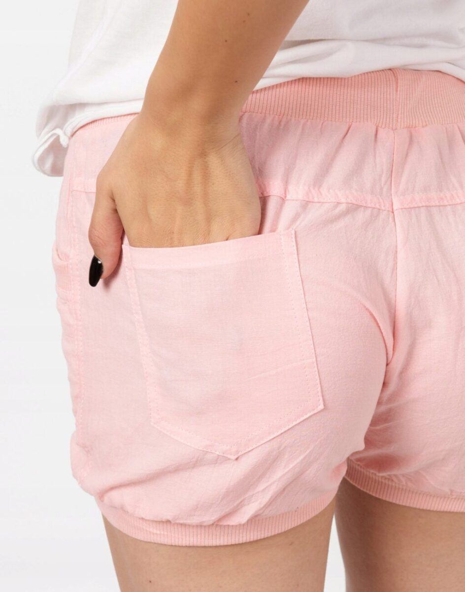 Krótkie, lekkie jak piórko, ze średnim stanem o sprawdzonym kroju, cienkie i wygodne, idealne na co dzień jako element casualowego stroju, czyniąc go lekkim i dostosowanym do wysokich temperatur. Wykonane według najnowszych trendów przewidzianych na ten sezon. Posiadają szeroki elastyczny pas ściągający oraz dodatkowo wpuszczoną w pasek taśmę regulacyjną z możliwością jej zawiązywania. Dwie kieszonki naszywane z przodu i dwie z tyłu spodenek. Doły nogawek zakończone delikatnym ściągaczem.