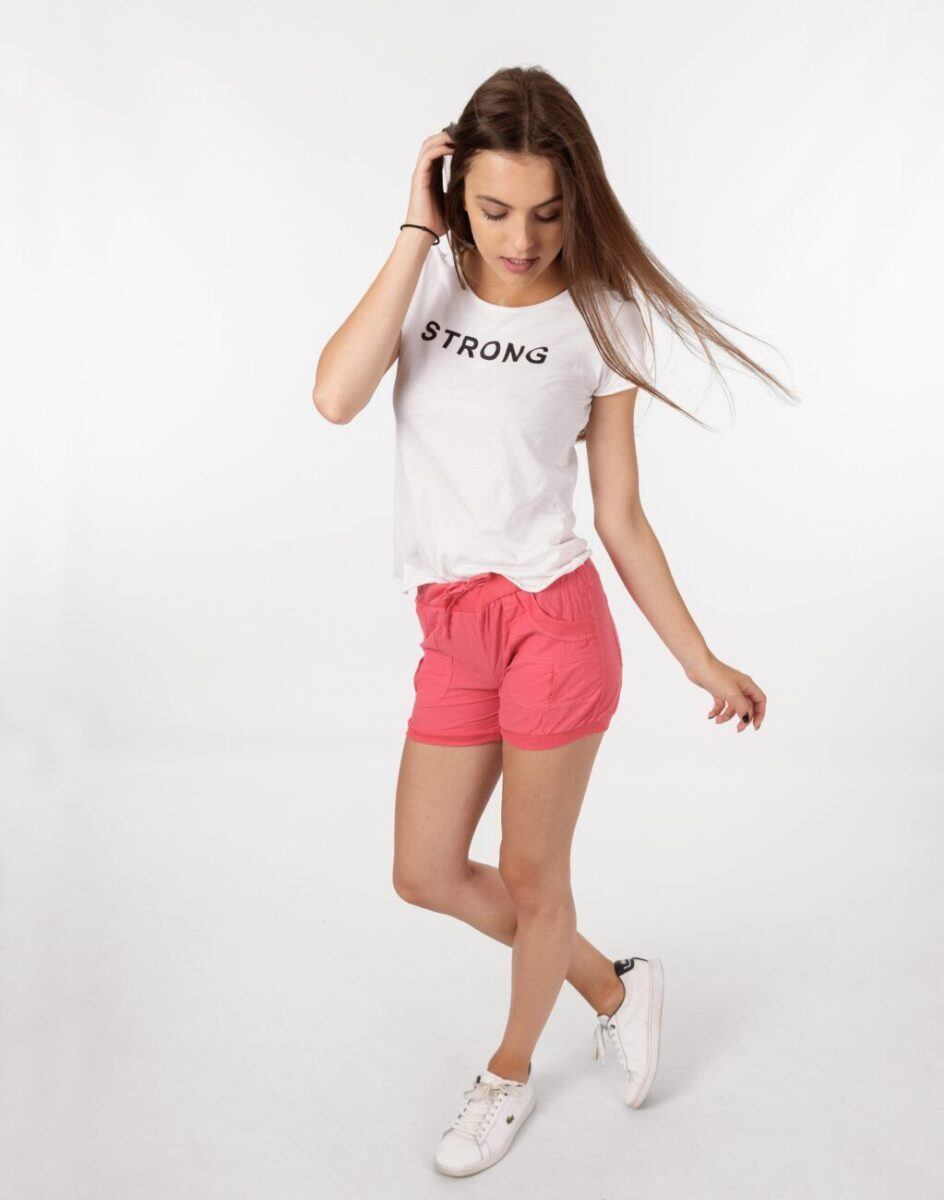 Odpowiedni krój spodenek nie ogranicza swobody ruchów, a niewielka gramatura wpływa na komfort użytkowania. Świetne zarówno do uprawiania sportu jak i do noszenia na co dzień. Zapewnią Ci atrakcyjny modny wygląd i jednocześnie sportowy charakter. Nadają się na spacer, weekendowy wypad z przyjaciółmi, doskonale spełniają rolę wakacyjnego stroju wprowadzając nieco swobody a przy tym zadając szyku. Możesz je śmiało łączyć zarówno ze szpilkami (idealnie wydłużają kobiece nogi), jak i obuwiem sportowym a Twoja stylizacja nabierze wyjątkowego charakteru.