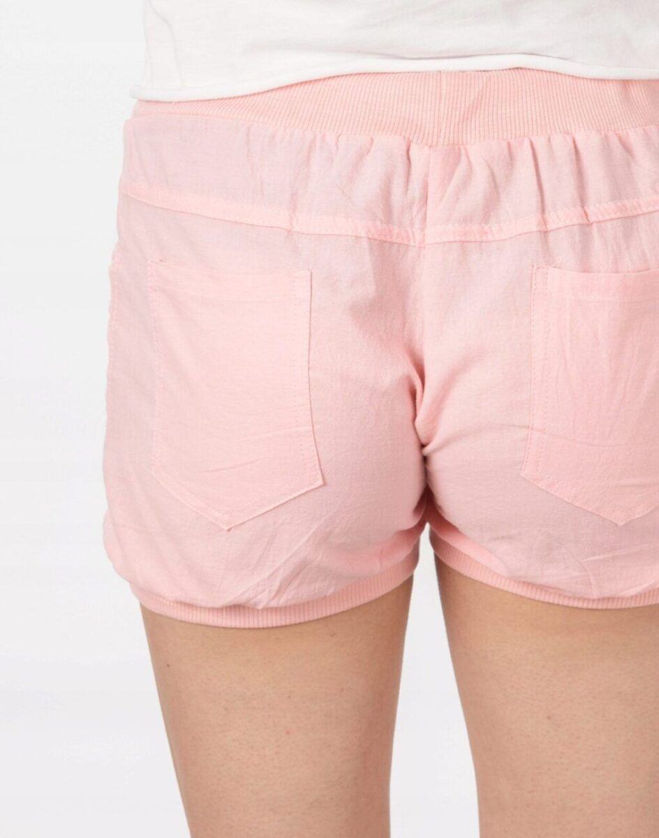 Krótkie, lekkie jak piórko, ze średnim stanem o sprawdzonym kroju, cienkie i wygodne, idealne na co dzień jako element casualowego stroju, czyniąc go lekkim i dostosowanym do wysokich temperatur. Wykonane według najnowszych trendów przewidzianych na ten sezon. Posiadają szeroki elastyczny pas ściągający oraz dodatkowo wpuszczoną w pasek taśmę regulacyjną z możliwością jej zawiązywania. Dwie kieszonki naszywane z przodu i dwie z tyłu spodenek. Doły nogawek zakończone delikatnym ściągaczem.