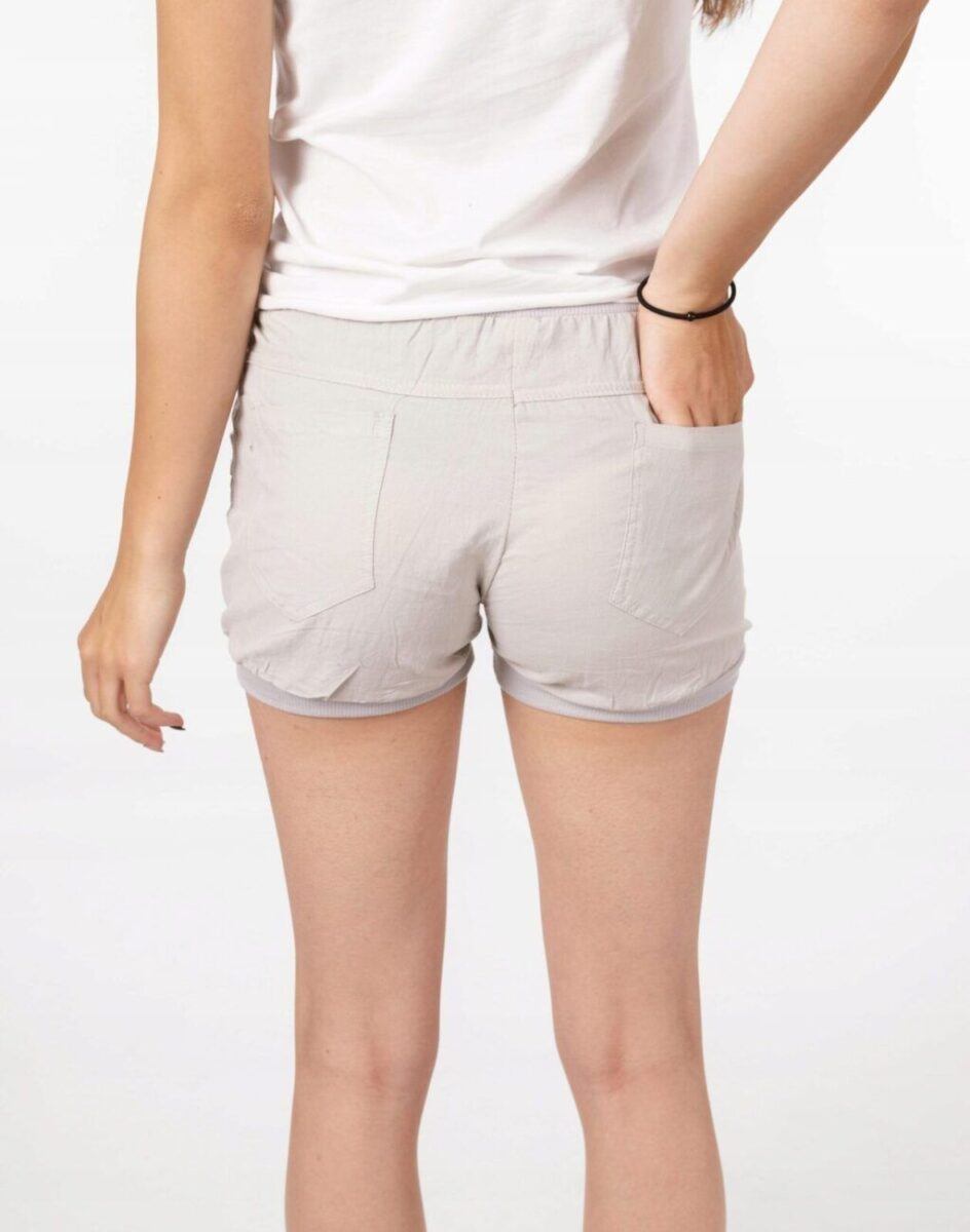 Krótkie, lekkie jak piórko, ze średnim stanem o sprawdzonym kroju, cienkie i wygodne, idealne na co dzień jako element casualowego stroju, czyniąc go lekkim i dostosowanym do wysokich temperatur. Wykonane według najnowszych trendów przewidzianych na ten sezon. Posiadają szeroki elastyczny pas ściągający oraz dodatkowo wpuszczoną w pasek taśmę regulacyjną z możliwością jej zawiązywania. Dwie kieszonki naszywane z przodu i dwie z tyłu spodenek. Doły nogawek zakończone delikatnym ściągaczem.