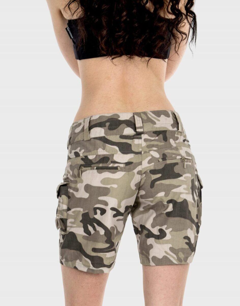 Przedmiotem tej aukcji są rewelacyjne szorty damskie w najmodniejszym w tym sezonie wzorze moro CAMO dla fanek militarnego stylu smart-casual. Spodenki zapinane są na zamek błyskawiczny i dwa guziki. Na udach kieszonki typu Cargo zapinane na zamek błyskawiczny i napy. Z tyłu kieszonki wpuszczane zasuwane na zamki błyskawiczne. W pasie szlufki umożliwiające stylizacje z paskiem. Stan podwyższony zgrabnie modelujący sylwetkę w talii.