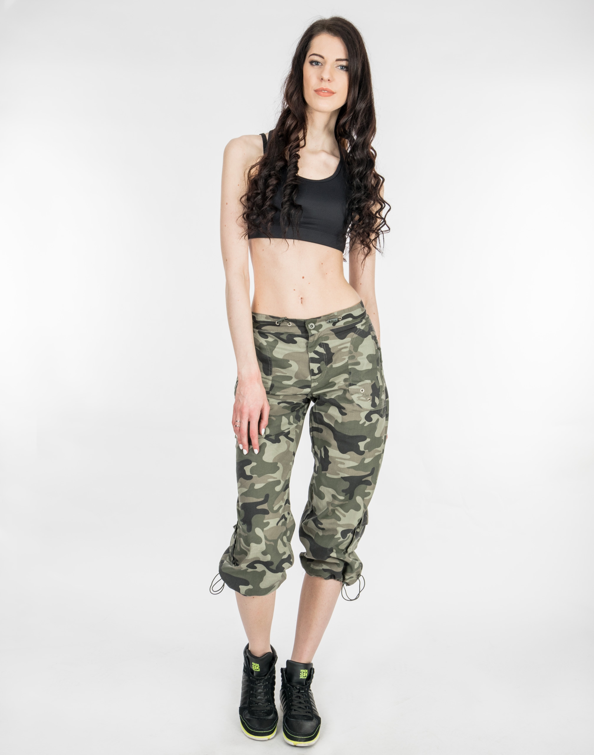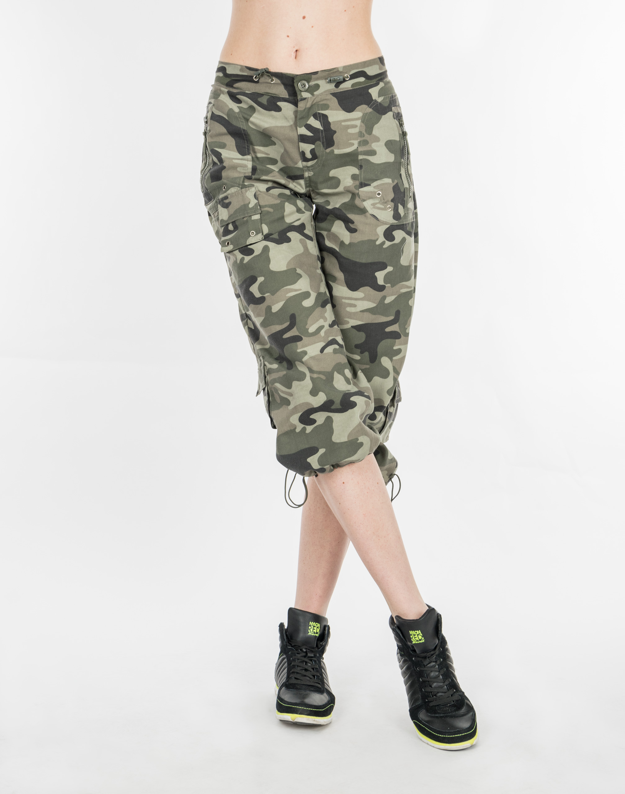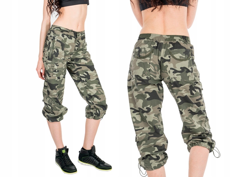Przedmiotem tej aukcji są rewelacyjne rybaczki damskie w najmodniejszym w tym sezonie wzorze moro CAMO dla fanek militarnego stylu smart-casual. Spodenki zapinane są na zamek błyskawiczny i guzik. Szeroki elastyczny ściągacz oraz gumka ze stoperami, umożliwiają dopasowanie w pasie i ładnie podkreślą talię. Z przodu mają dwie kieszenie na dłonie zasuwane na zamki błyskawiczne. Z tyłu dwie kieszenie naszywane kryte patkami zapinanymi na rzepy. Na nogawkach trzy małe kieszonki typu Cargo kryte patkami zapinanymi na rzepy. Doły nogawek mają możliwość regulacji szerokości i dopasowania. Stan podwyższony zgrabnie modelujący sylwetkę w talii.