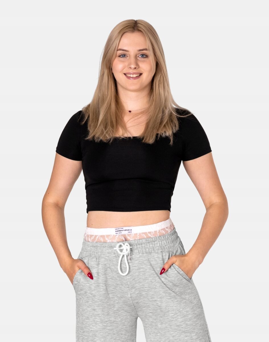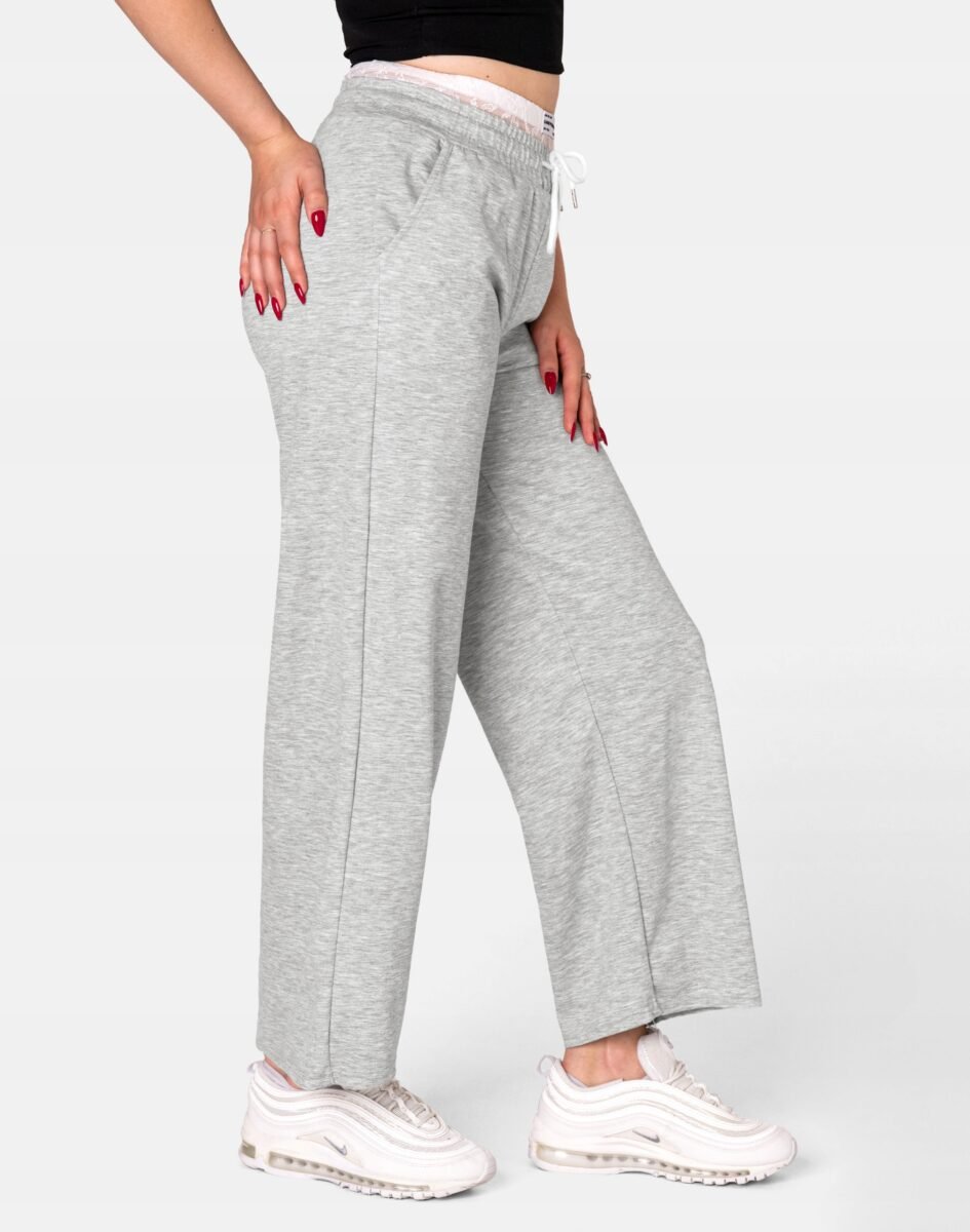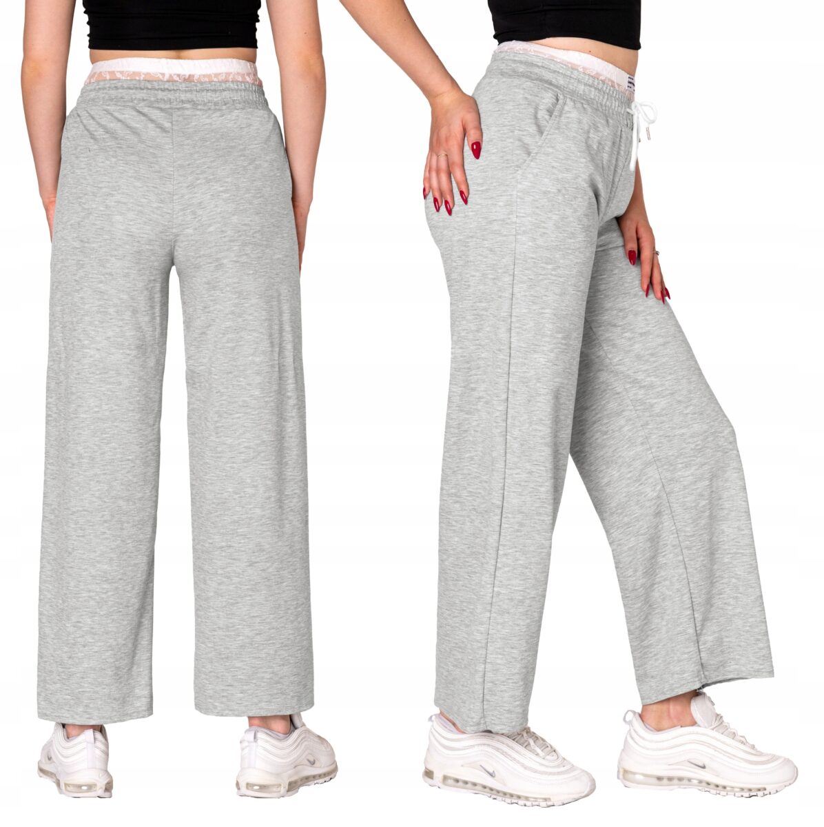 Z założenia wyróżniają się dużą wygodą a dopasowanie w pasie zapewnia szeroki, elastyczny pas ściągający zgrabnie modelujący talię, oraz dodatkowo wpuszczona w pasek taśma regulacyjna z możliwością jej zawiązywania. Z przodu mają dwie wpuszczane kieszenie na dłonie, tył gładki bez kieszeni. Stan podwyższony "High Rise" z ozdobną wstawką z koronki w pasie zapewnia świetne dopasowanie i zgrabnie modeluje sylwetkę w talii. Spodnie z szerokimi nogawkami idealnie równoważą proporcje sylwetki i dzięki nieco ekstrawaganckiemu charakterowi sprawią, że nawet minimalistyczna stylizacja będzie prezentować się nietuzinkowo. Zaprezentują Cię jako osobę, która lubi czuć się wygodnie i uwielbia najnowsze trendy aby bawić się własnym stylem w modzie.