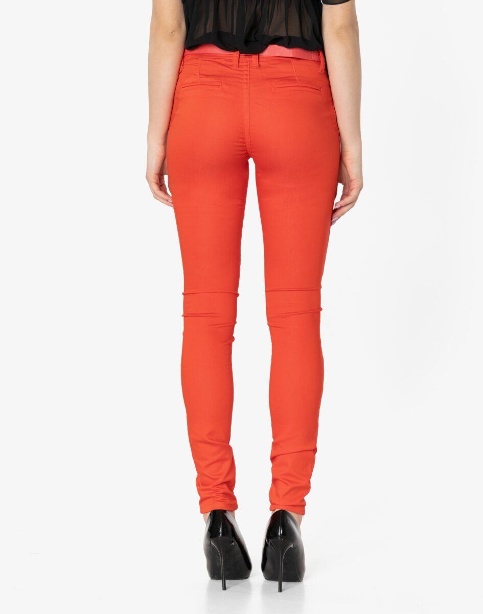 Klasyczny fason spodni Slim Fit z wąska nogawką i średnim stanem o bardzo dobrym i sprawdzonym przez wiele klientek kroju, pięknie modelującym kobiecą sylwetkę, podkreślającym pośladki i eksponującym talię. W zależności od dopasowanego elementu garderoby stworzysz wiele udanych stylizacji, w których będziesz czuła się wygodnie i swobodnie. Zapewniają poczucie atrakcyjności przy jednoczesnym zachowaniu wygody i pełnej swobody ruchów.