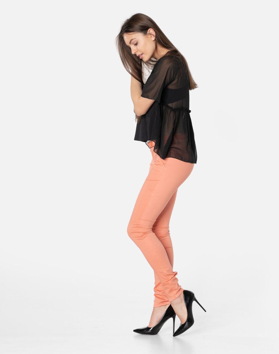 Oferowane przez nas spodnie uszyte są z wysokiej jakości cienkiej tkaniny typu „Light Denim”, która odznacza się wysoką elastycznością gwarantującą doskonałe dopasowanie do każdej figury. Spodnie nie będą się deformować i odkształcać nawet po długim użytkowaniu. Świetnie przylegają do ciała, a jednocześnie pozwalają na pełną swobodę ruchów, co daje komfort przy siadaniu i zapewnia ogromną wygodę noszenia. Możesz je śmiało łączyć zarówno ze szpilkami (idealnie wydłużają kobiece nogi), jak i obuwiem sportowym. Dobrze wyglądają również z podwiniętymi nogawkami.