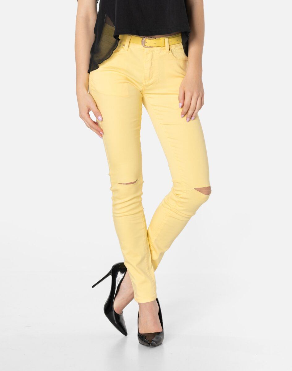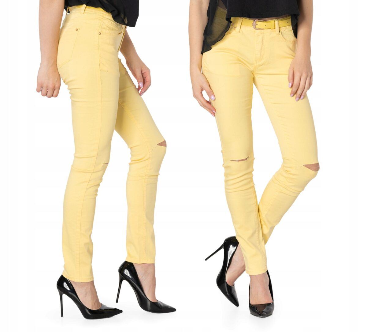 Oferowane przez nas spodnie uszyte są z wysokiej jakości cienkiej tkaniny typu „Light Denim”, która odznacza się wysoką elastycznością gwarantującą doskonałe dopasowanie do każdej figury. Spodnie nie będą się deformować i odkształcać nawet po długim użytkowaniu. Świetnie przylegają do ciała, a jednocześnie pozwalają na pełną swobodę ruchów, co daje komfort przy siadaniu i zapewnia ogromną wygodę noszenia. Na kolanach bardzo popularne od kilku sezonów poziome rozcięcia będące synonimem niezależności i subiektywności w wyrażaniu siebie oraz pojmowaniu mody. Możesz je śmiało łączyć zarówno ze szpilkami (idealnie wydłużają kobiece nogi), jak i obuwiem sportowym. Dobrze wyglądają również z podwiniętymi nogawkami.