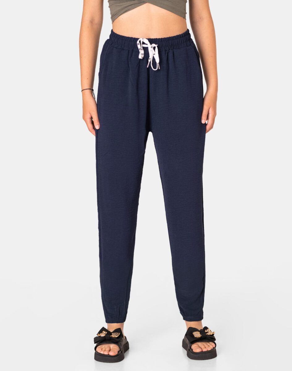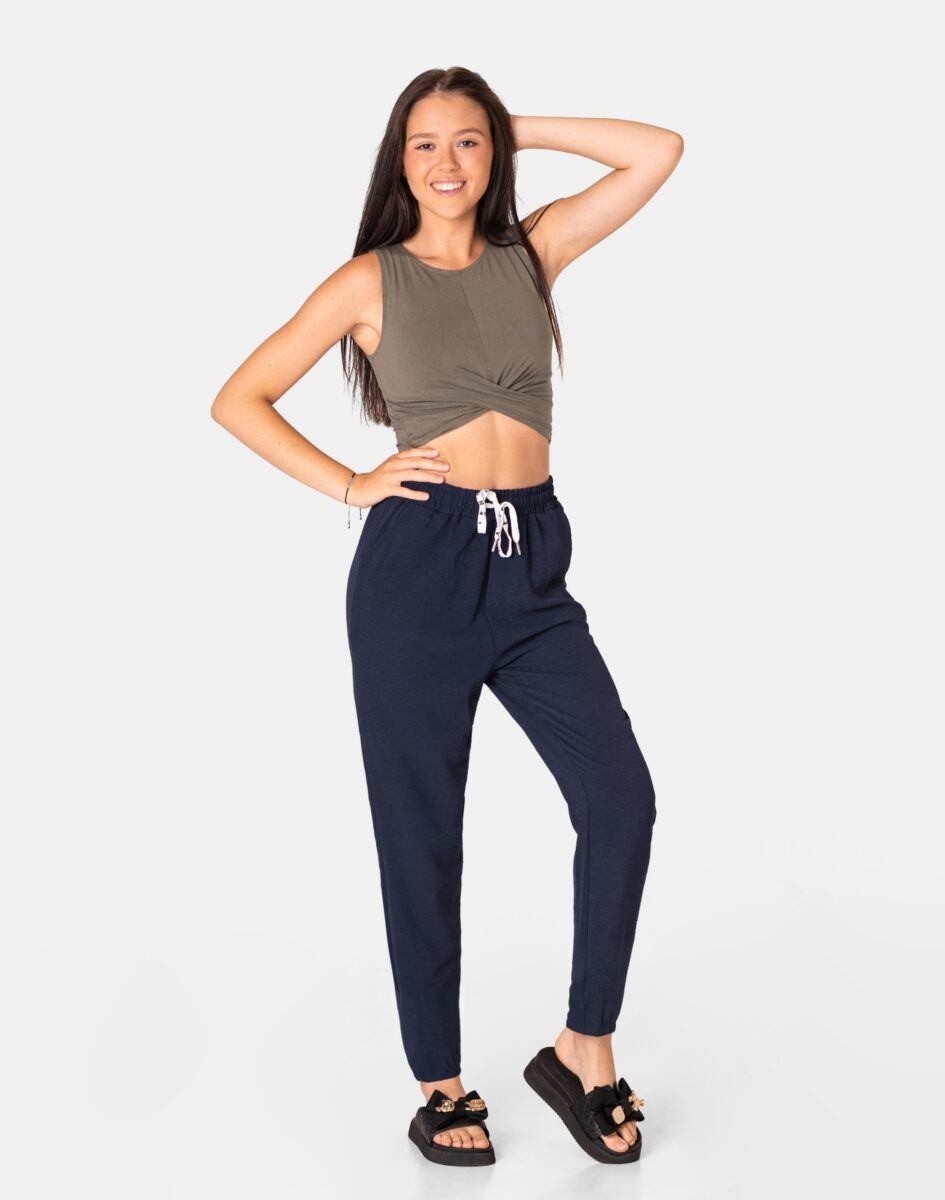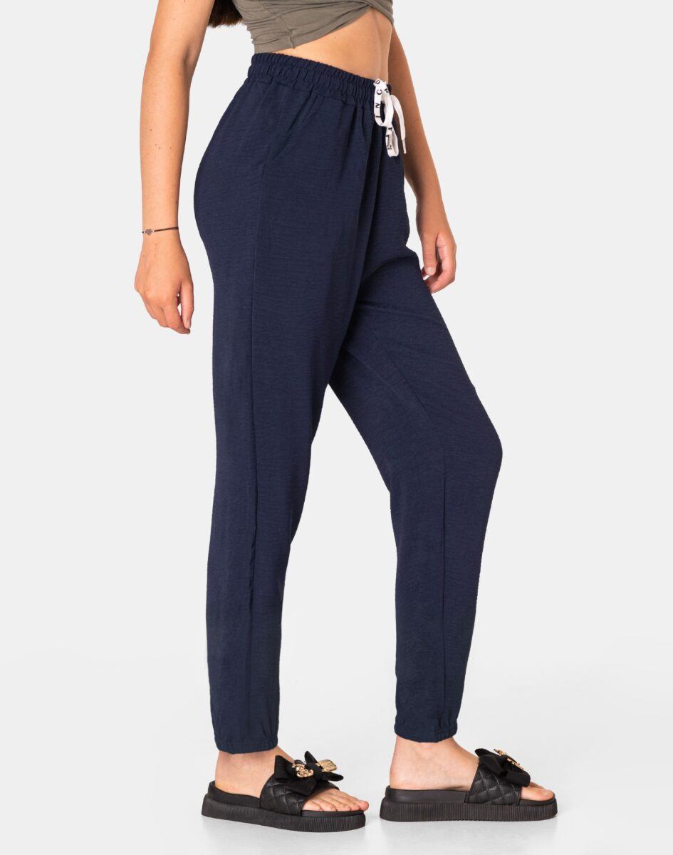 Wyjątkowo lekkie i przewiewne damskie spodnie bawełniane z wysokim stanem i luźną, zwężaną nogawką zakończoną ściągaczem to jeden z najczęściej wybieranych na ciepłe i gorące dni wiosny i lata modeli spodni. Wykonane z wysokiej jakości cienkiej, przewiewnej i oddychającej tkaniny bawełnianej. Dopasowanie w pasie zapewnia szeroki, elastyczny pas ściągający zgrabnie modelujący sylwetkę w talii oraz dodatkowo wpuszczona w pasek ozdobna taśma regulacyjna z możliwością jej zawiązywania. Na bokach spodni dwie wpuszczane kieszonki na dłonie. Odpowiedni na wysokie temperatury luźny krój spodni nie ogranicza swobody ruchów, a niewielka gramatura tkaniny (140 g/m2) pozytywnie wpływa na komfort użytkowania w upalne dni. Idealne na co dzień jako element casualowego stroju czyniąc go lekkim i dostosowanym do wysokich temperatur.
