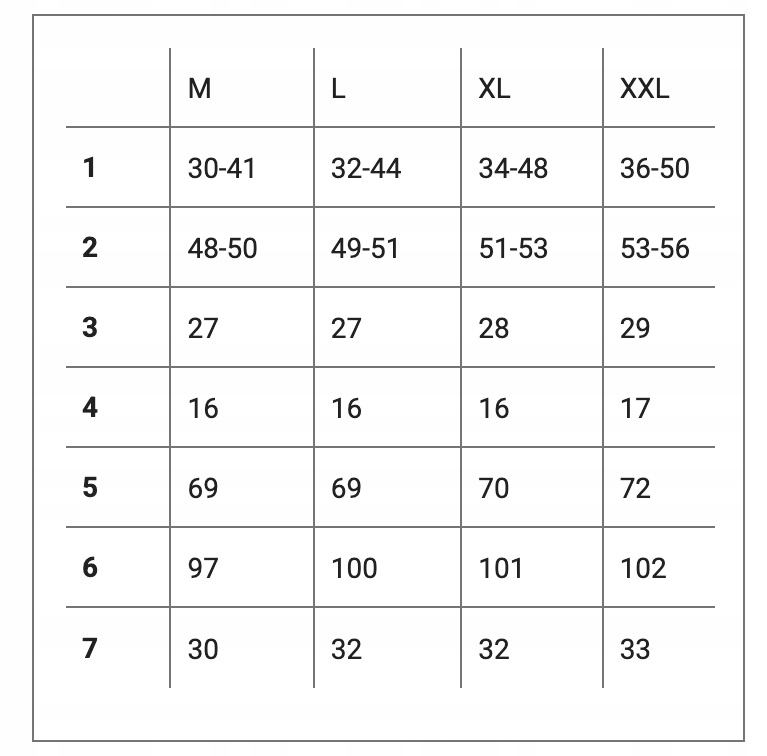 Proszę nie sugerować się rozmiarem podanym na metce przez producenta ( np: M, L czy XXL) ponieważ różne firmy stosują bardzo różne oznaczenia rozmiaru na co my jako sprzedawcy na Allegro nie mamy żadnego wpływu. Najlepiej jest zmierzyć się dokładnie centymetrem a następnie porównać swoje wymiary z tabelą wymiarów podaną przez nas na aukcji i wybrać odpowiedni rozmiar.