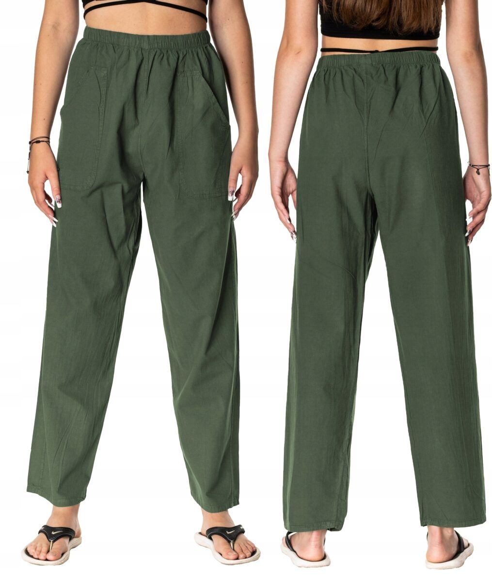 Cienkie, zwiewne spodnie damskie bawełniane z prostą luźną nogawką na wiosnę, lato…