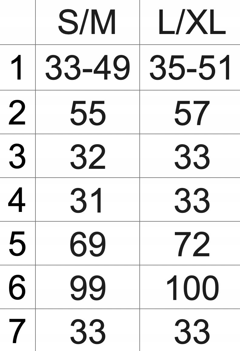 Proszę nie sugerować się rozmiarem podanym na metce przez producenta ( np: S/M czy L/XL ) ponieważ różne firmy stosują bardzo różne oznaczenia rozmiaru na co my jako sprzedawcy na Allegro nie mamy żadnego wpływu. Najlepiej jest zmierzyć się dokładnie centymetrem a następnie porównać swoje wymiary z tabelą wymiarów podaną przez nas na aukcji i wybrać odpowiedni rozmiar.