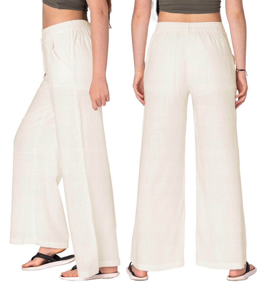 Cienkie Szerokie Luźne Spodnie Damskie Bawełniane + Len na Lato FG001-02 38
