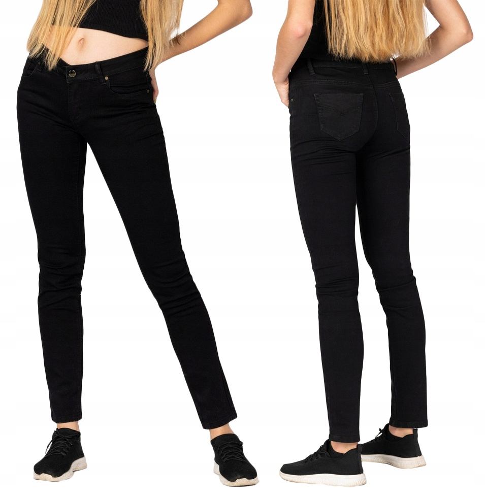 Czarne Spodnie Jeansy Damskie Rurki Slim Fit ze Streczem