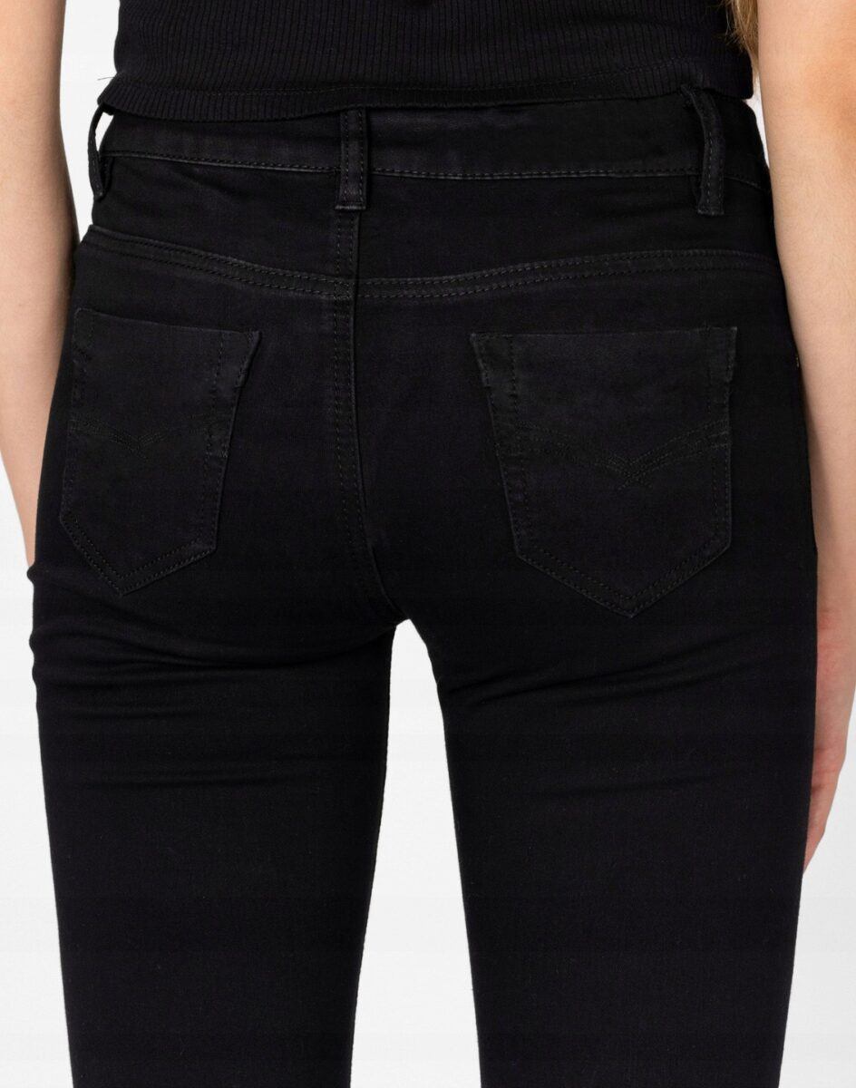 Oferowane przez nas spodnie uszyte są z wysokiej jakości, trwałej i mocnej, elastycznej tkaniny jeansowej o czarnym wybarwieniu „Denim Super Black” z domieszką lycry. Niewielki dodatek lycry sprawia, że spodnie są bardziej elastyczne, ładnie dopasowują się do sylwetki i są bardzo komfortowe w użytkowaniu, a nogi wydają się się optycznie dłuższe. Dobrze wyglądają również z podwiniętymi nogawkami. Niepozorne podwinięcie nogawek spodni nadaje stylizacjom ciekawej nonszalancji i zadziorności. Łatwo się je zakłada i są znacznie wygodniejsze od jeansów, które lycry nie mają. Poza tym bawełna ma tendencję do kurczenia się w praniu, dlatego lycra sprawia, że spodnie są wyjątkowo praktyczne i można je bez problemu założyć po wysuszeniu. Pozwalają na pełną swobodę ruchów, co daje wygodę przy siadaniu i zapewnia ogromny komfort noszenia. Możesz je śmiało łączyć zarówno ze szpilkami (idealnie wydłużają kobiece nogi), jak i obuwiem sportowym. Zapewniają poczucie atrakcyjności przy jednoczesnym zachowaniu wygody i pełnej swobody ruchów.