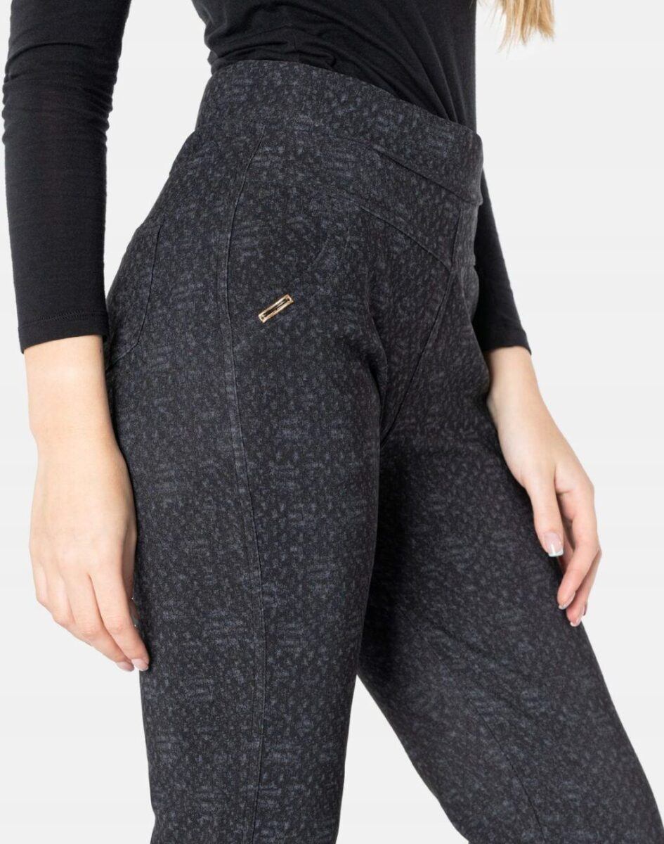 Wykonane z przyjemnej w dotyku dzianiny bawełnianej z dodatkiem elastanu dzięki czemu spodnie są bardziej elastyczne i bardzo dobrze dopasowują się do każdej figury. Trwałe i elastyczne wykończenie spodni (użycie do produkcji elastycznych nici) gwarantuje komfort i wygodę ich użytkownikowi w każdych warunkach, a tkanina jest na tyle gruba, że nie widać przez nią bielizny. Pozwalają na pełną swobodę ruchów, co daje komfort przy siadaniu i zapewnia ogromny komfort noszenia. Uniwersalny, zawsze modny krój typu cygaretki z lekko zwężoną nogawką i wyższym stanem, które założysz na wiele różnych okazji.