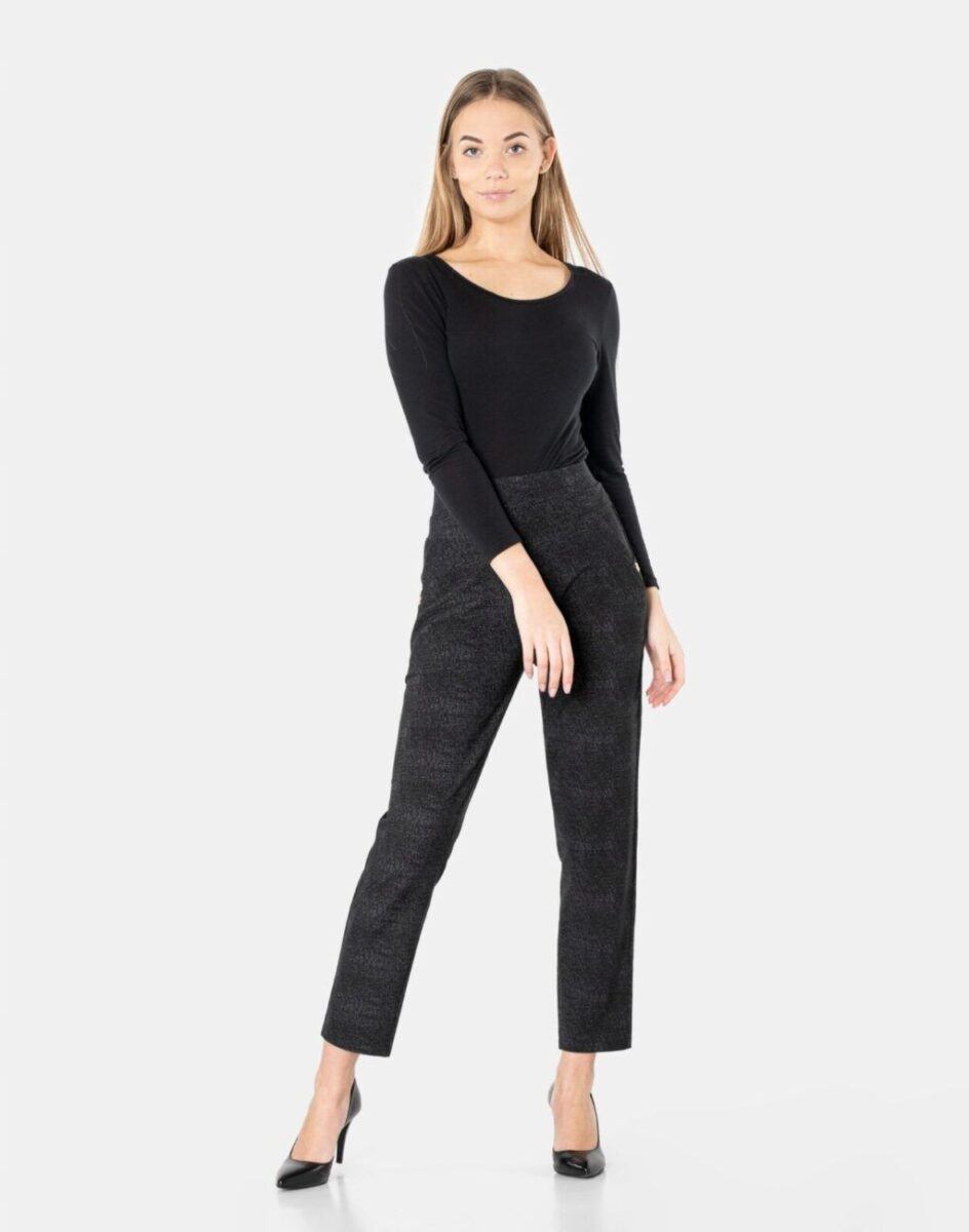 Wykonane z przyjemnej w dotyku dzianiny bawełnianej z dodatkiem elastanu dzięki czemu spodnie są bardziej elastyczne i bardzo dobrze dopasowują się do każdej figury. Trwałe i elastyczne wykończenie spodni (użycie do produkcji elastycznych nici) gwarantuje komfort i wygodę ich użytkownikowi w każdych warunkach, a tkanina jest na tyle gruba, że nie widać przez nią bielizny. Pozwalają na pełną swobodę ruchów, co daje komfort przy siadaniu i zapewnia ogromny komfort noszenia. Uniwersalny, zawsze modny krój typu cygaretki z lekko zwężoną nogawką i wyższym stanem, które założysz na wiele różnych okazji.
