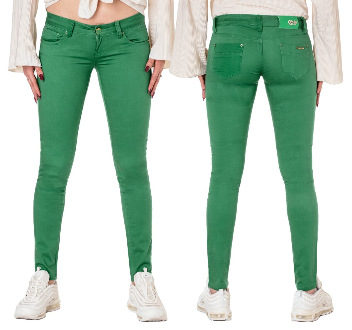 Spodnie damskie model 5895 to klasyczne, bardzo szykowne rurki z wąskimi nogawkami o wyszczuplającym optycznie kobiecą sylwetkę fasonie (Slim Fit) i średnim stanie (Medium Waist). Zapinane na kryty zamek błyskawiczny i metalowy guzik sygnowany logiem firmy. Z przodu mają dwie kieszonki zaokrąglone oraz mniejszą kieszonkę tzw. bilonówkę, a na tyle klasyczne kieszenie naszywane jak w typowych spodniach jeansowych. W pasie szlufki umożliwiające stylizacje z paskiem. Najbardziej podatne na uszkodzenia miejsca wzmocnione są dodatkowymi przeszyciami i małymi ozdobnymi nitami.