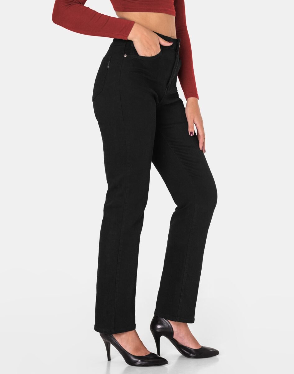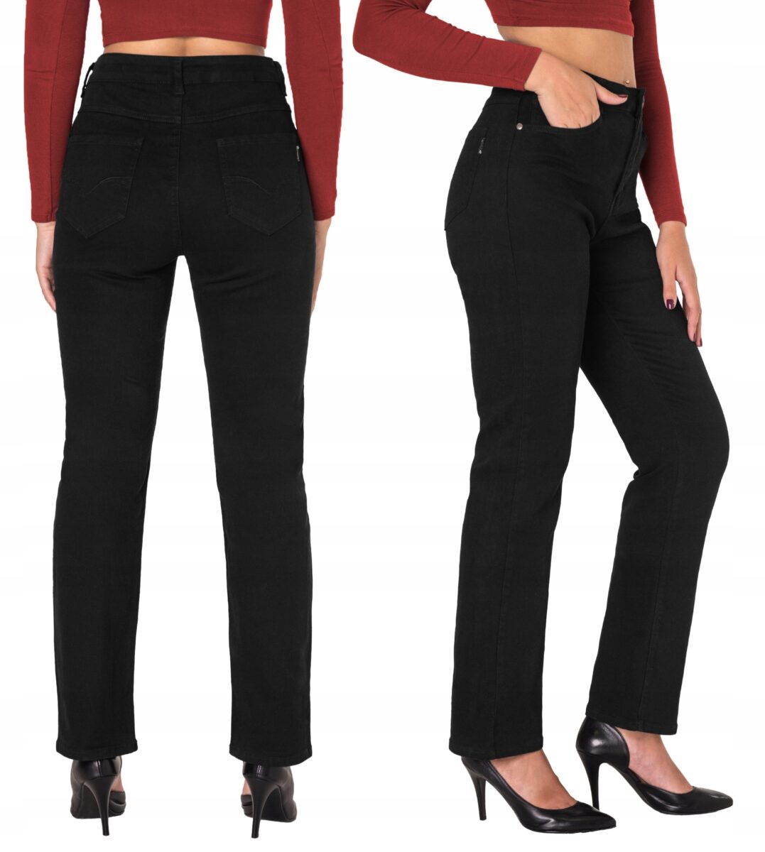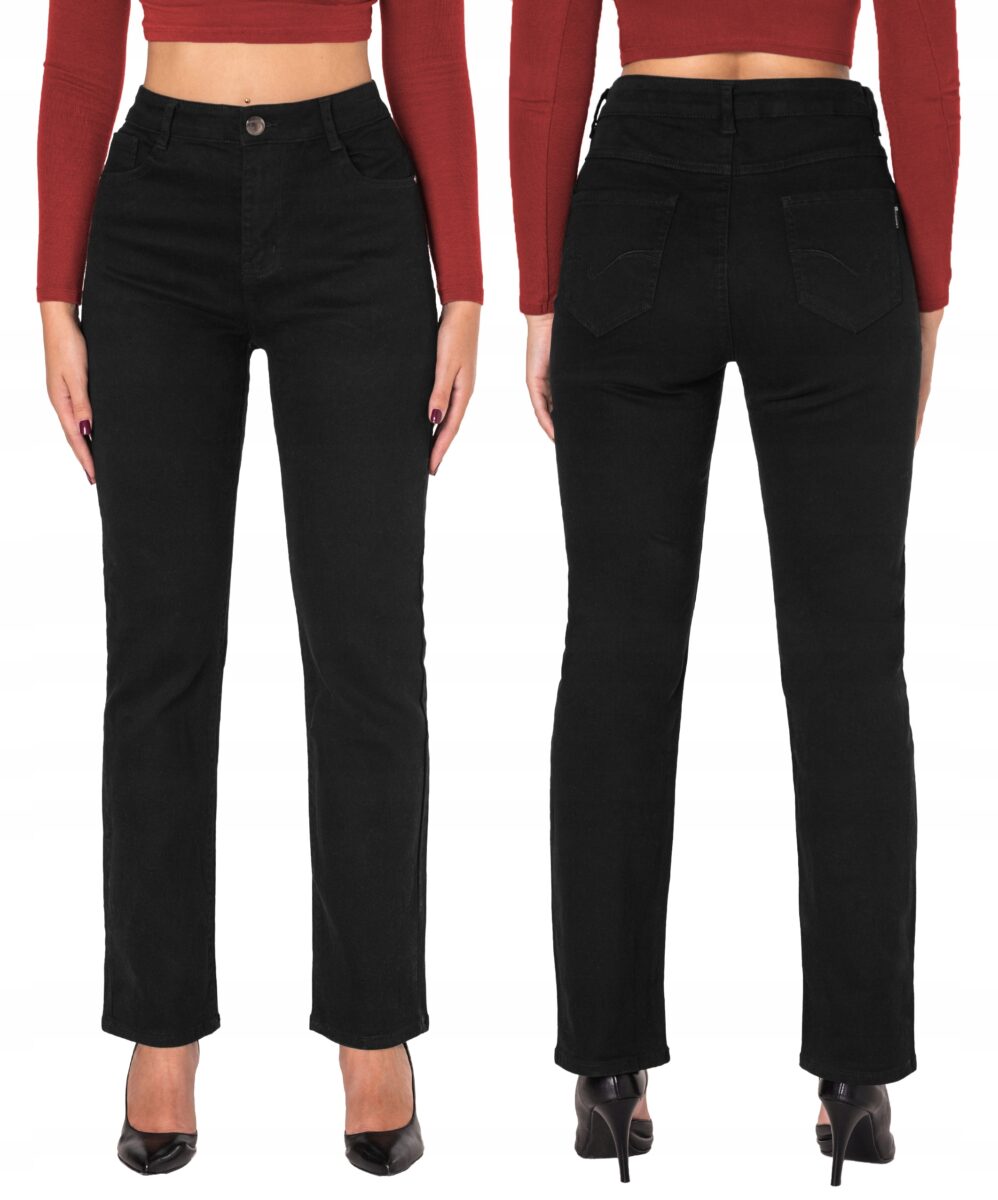Czarne Jeansy Damskie z Prostą Nogawką i Wysokim Stanem H-R