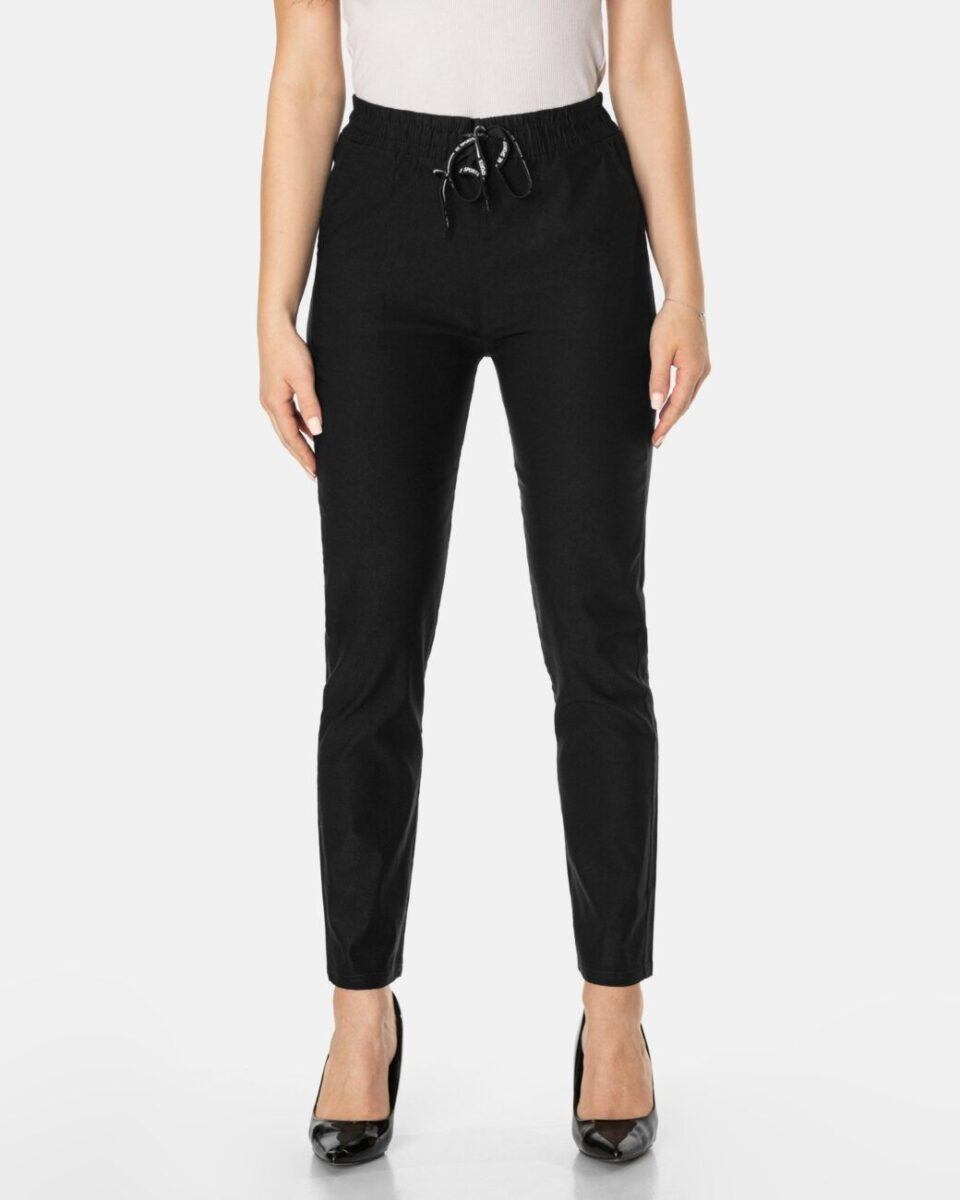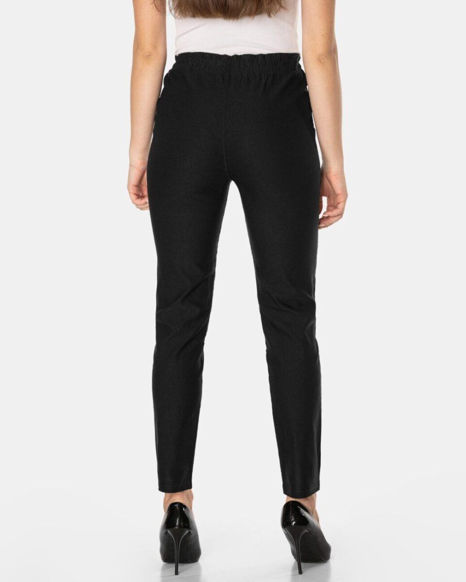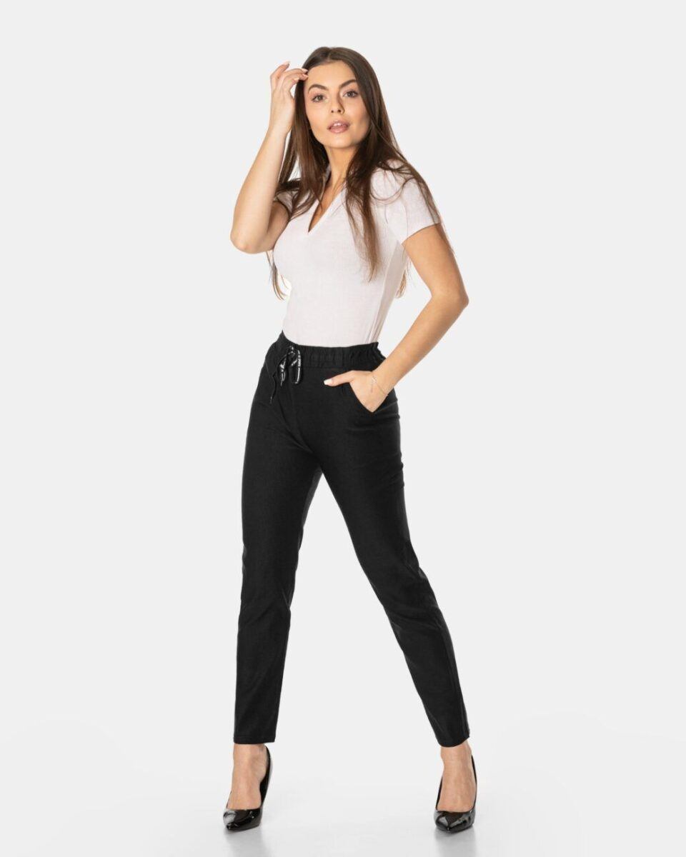 Wykonane z wysokiej jakości tkaniny z dodatkiem elastanu (lycra) dzięki czemu spodnie są bardziej elastyczne, bardzo dobrze się układają i dopasowują do każdej figury. Pozwalają na pełną swobodę ruchów co daje komfort przy siadaniu i zapewnia ogromny komfort noszenia. Trwałe i elastyczne wykończenie spodni (użycie do produkcji elastycznych nici) gwarantuje komfort i wygodę ich użytkownikowi w każdych warunkach, a tkanina jest na tyle gruba, że nie widać przez nią bielizny. Sprawdzony przez wiele zadowolonych klientek uniwersalni i modny krój typu cygaretki z lekko zwężoną nogawką i wyższym stanem, które założysz na wiele różnych okazji.