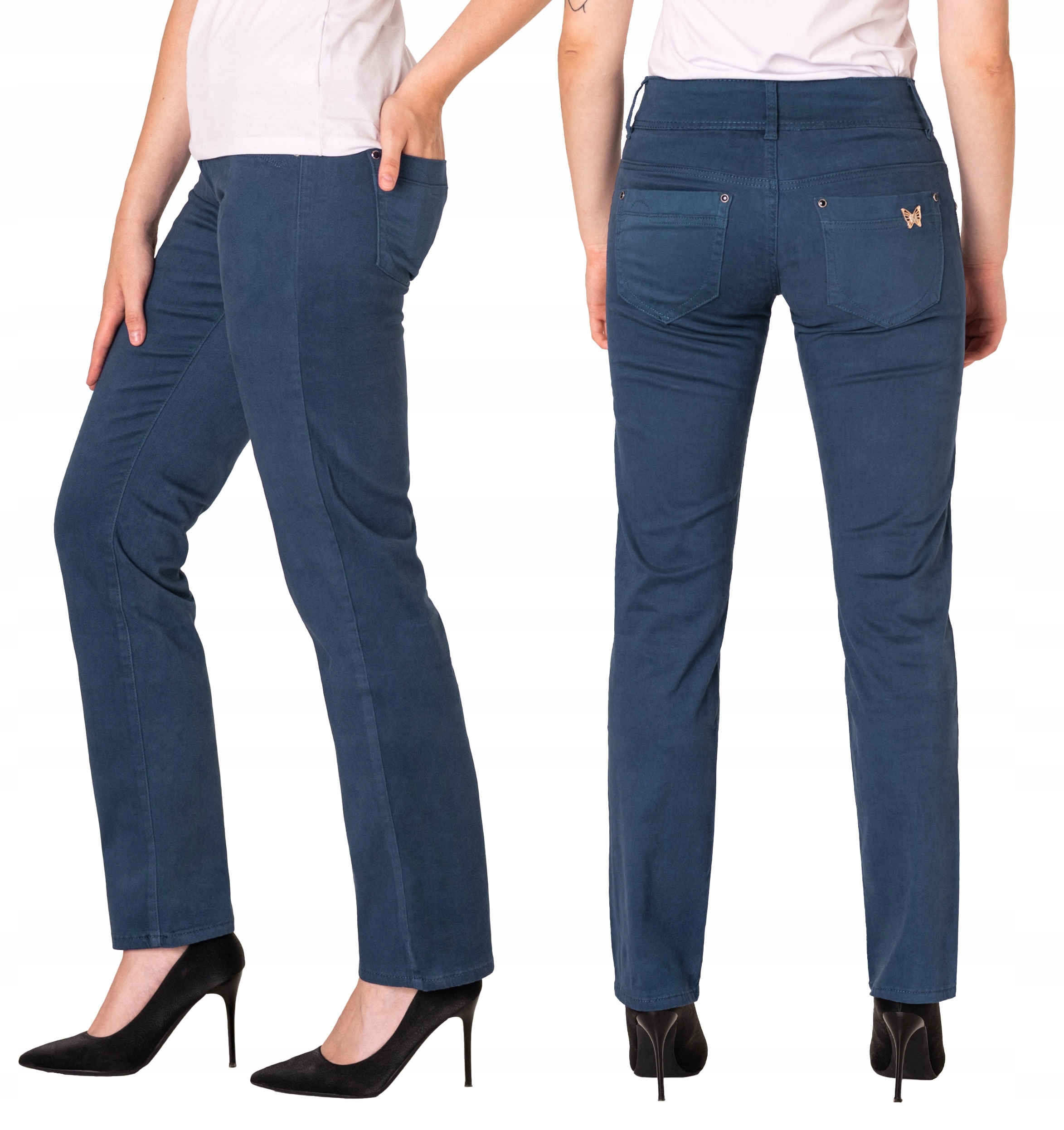 Eleganckie Spodnie Damskie Bawełniane z Prostą Nogawką Indygo Jeans 5234 36