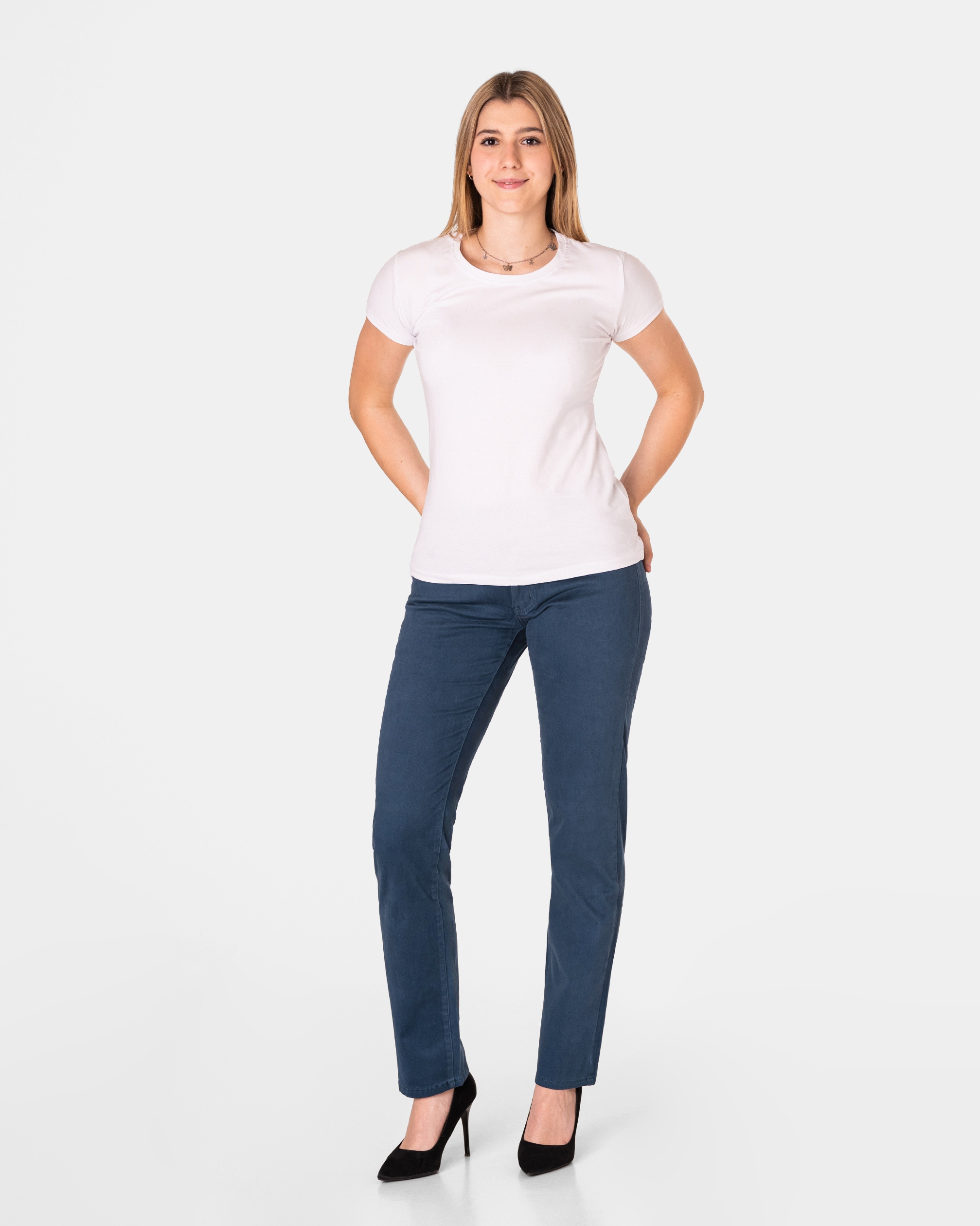 .. to sprawdzony przez szerokie grono naszych zadowolonych klientek tradycyjny fason spodni pasujący do każdego typu sylwetki i podstawa gwarantująca sukces do wielu udanych stylizacji.