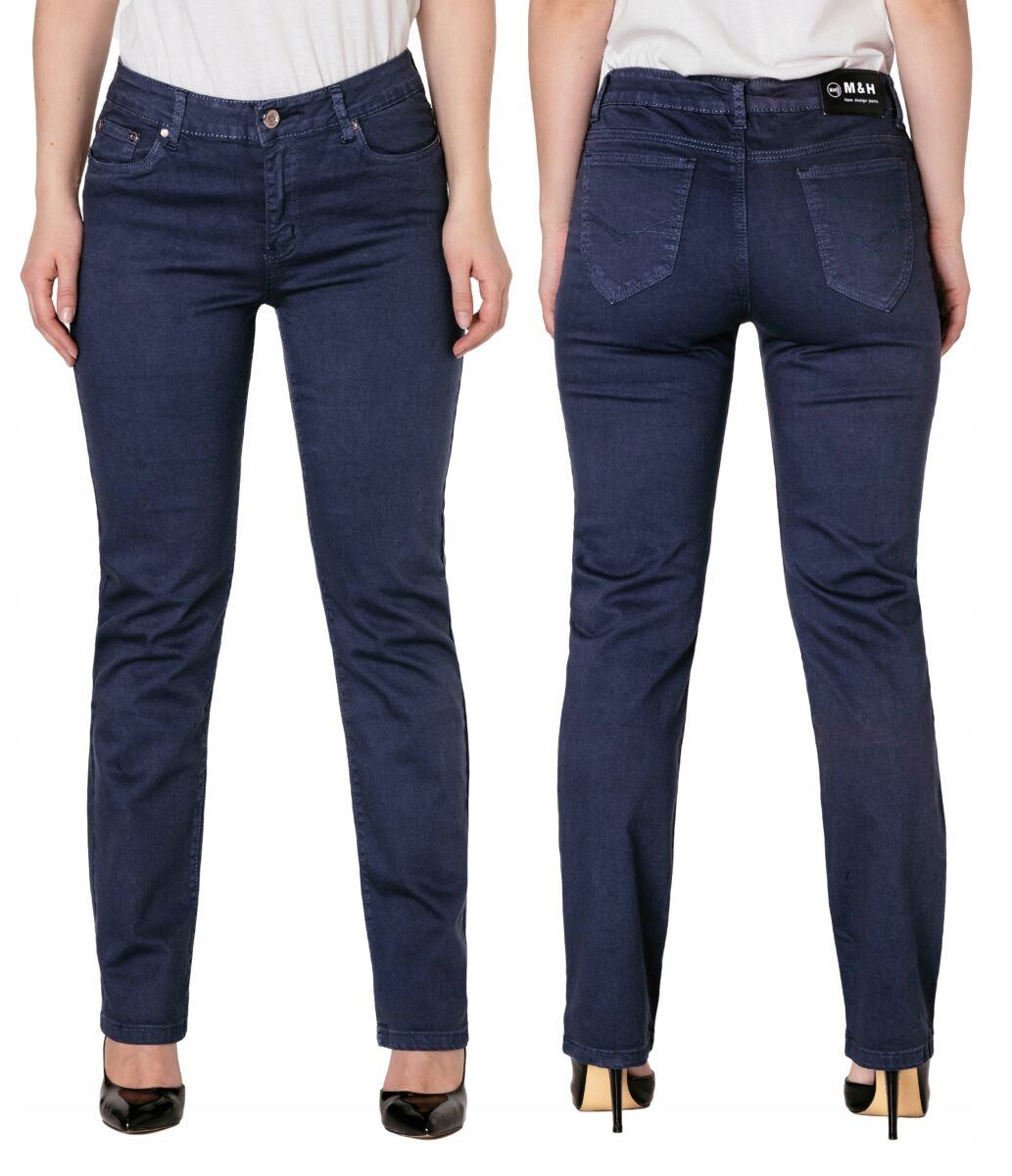 Spodnie bawełniane damskie model #A67 z klasyczną prostą nogawką to klasyka wśród klasyki i jeden z najczęściej wybieranych modeli spodni. Zapinane na kryty zamek błyskawiczny i guzik. Z przodu mają dwie zaokrąglone kieszonki oraz mniejszą tzw. bilonówkę. Na tyle klasyczne naszywane kieszenie jak w typowych spodniach jeansowych. W pasie szlufki umożliwiające stylizacje z paskiem. Najbardziej podatne na uszkodzenia miejsca wzmocnione są dodatkowymi przeszyciami oraz ozdobnymi nitami.