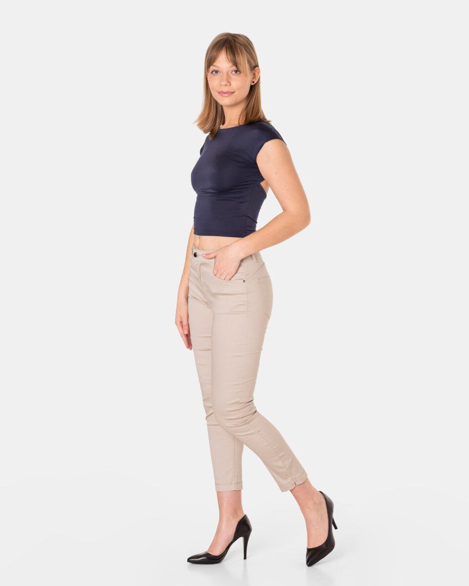.. to prawdziwy hit, który wyparł inne modele i króluje wśród najczęściej wybieranych przez modne kobiety krojów spodni, bo ładnie podkreślają kobiece pośladki i łydki. Wąskie nogawki o długości 7/8 i wyższy stan wyszczuplą wizualnie Twoją sylwetkę, dodadzą jej lekkości i sprawią, że każda stylizacja nabierze wyjątkowego charakteru.