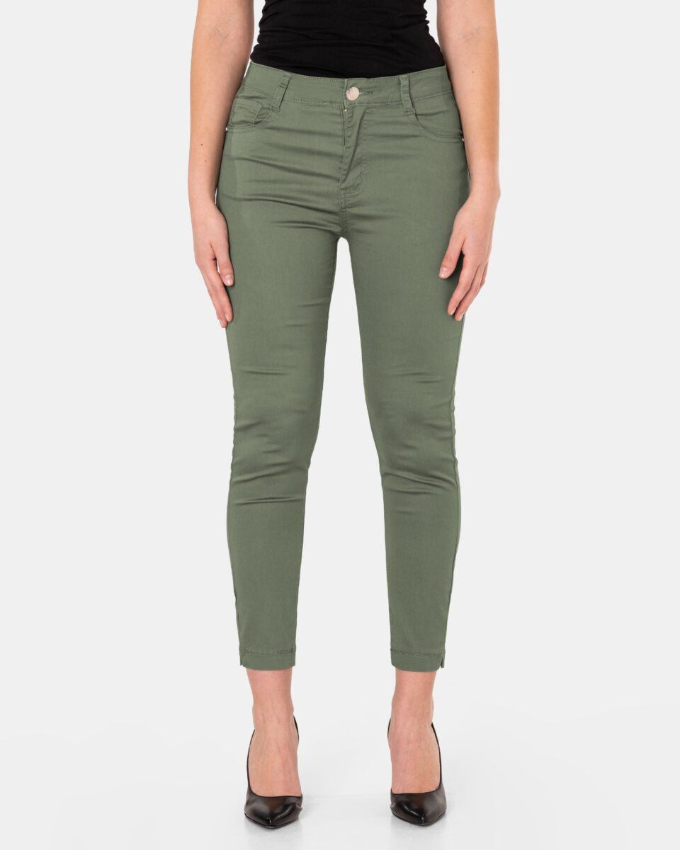 Oferowane przez nas spodnie uszyte są z wysokiej jakości tkaniny bawełnianej średniej grubości z domieszką lycry (elastan), dzięki czemu spodnie są bardziej elastyczne, ładnie przylegają do ciała, a nogi wydają się optycznie dłuższe. Krótsze nogawki 7/8 oraz niepozorne, ozdobne rozcięcie dołu nogawek spodni nadaje stylizacjom ciekawej nonszalancji i zadziorności. Łatwo się je zakłada i są znacznie wygodniejsze od jeansów, które lycry nie mają. Poza tym bawełna ma tendencję do kurczenia się w praniu, dlatego lycra sprawia, że spodnie są wyjątkowo praktyczne i można je bez problemu założyć po wysuszeniu. Pozwalają na pełną swobodę ruchów, co daje komfort przy siadaniu i zapewnia ogromny komfort noszenia. Modny i sprawdzony krój spodni sprawi, że w zależności od dopasowanego do nich elementu garderoby stworzysz wiele udanych stylizacji, w których będziesz czuła się wygodnie i swobodnie. Możesz je śmiało łączyć zarówno z eleganckimi szpilkami (idealnie wydłużają kobiece nogi), lub w wersji bardziej „na luzie” z balerinami lub czółenkami na wysokim obcasie, a Twoja stylizacja nabierze wyjątkowego charakteru. Zapewniają poczucie atrakcyjności przy jednoczesnym zachowaniu wygody i pełnej swobody ruchów. Sprawdzony przez wiele zadowolonych klientek fason spodni z wąską dopasowaną nogawką 7/8 pozwoli Ci założyć je na wiele różnych okazji.