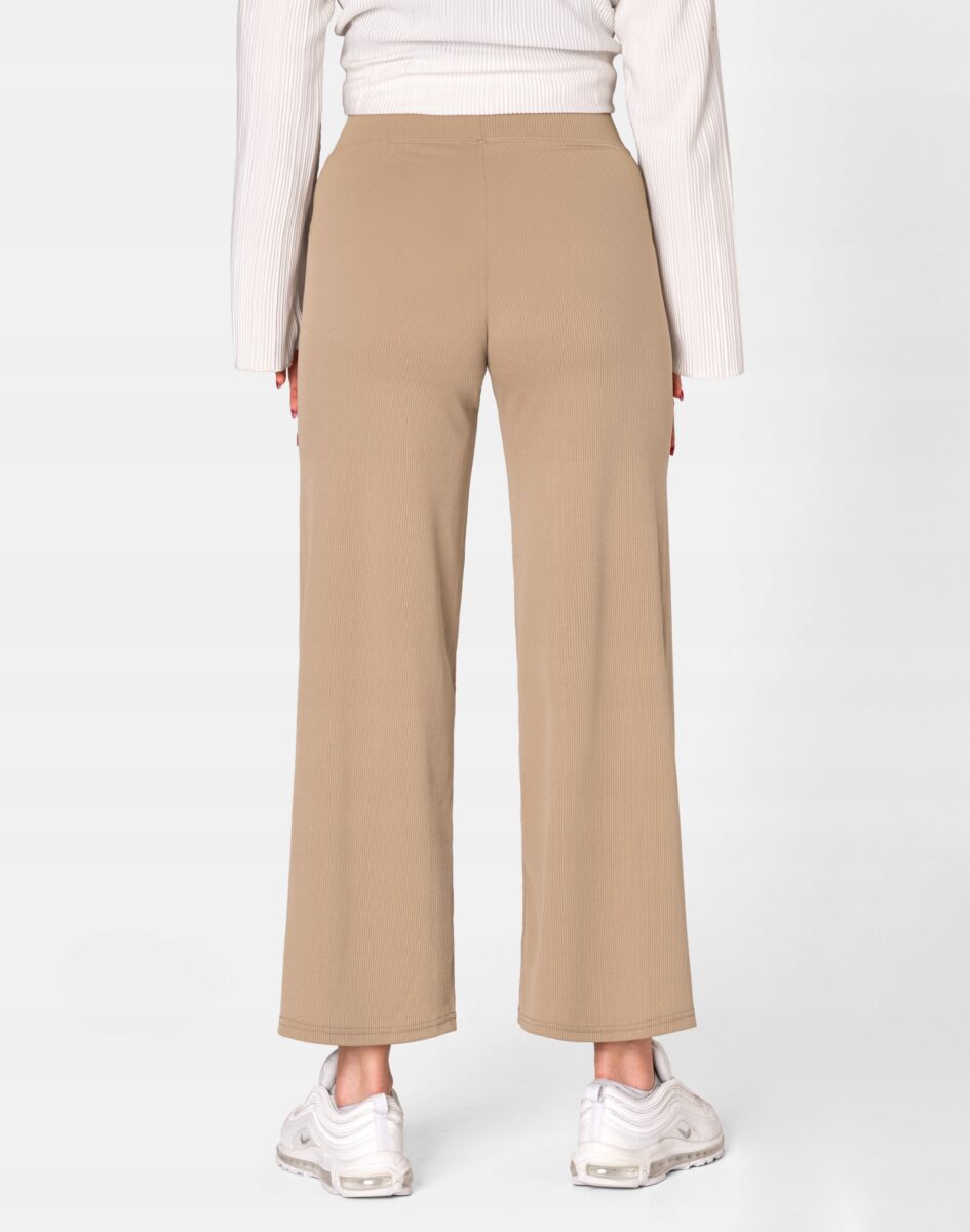 Z założenia wyróżniają się dużą wygodą a dopasowanie w pasie zapewnia szeroki, elastyczny pas ściągający zgrabnie modelujący sylwetkę w talii. Stan podwyższony "High Rise" i szerokie nogawki idealnie równoważą proporcje sylwetki a dzięki nieco ekstrawaganckiemu charakterowi sprawią, że nawet minimalistyczna stylizacja będzie prezentować się nietuzinkowo. Zaprezentują Cię jako osobę, która lubi czuć się wygodnie i uwielbia najnowsze trendy aby bawić się własnym stylem w modzie.