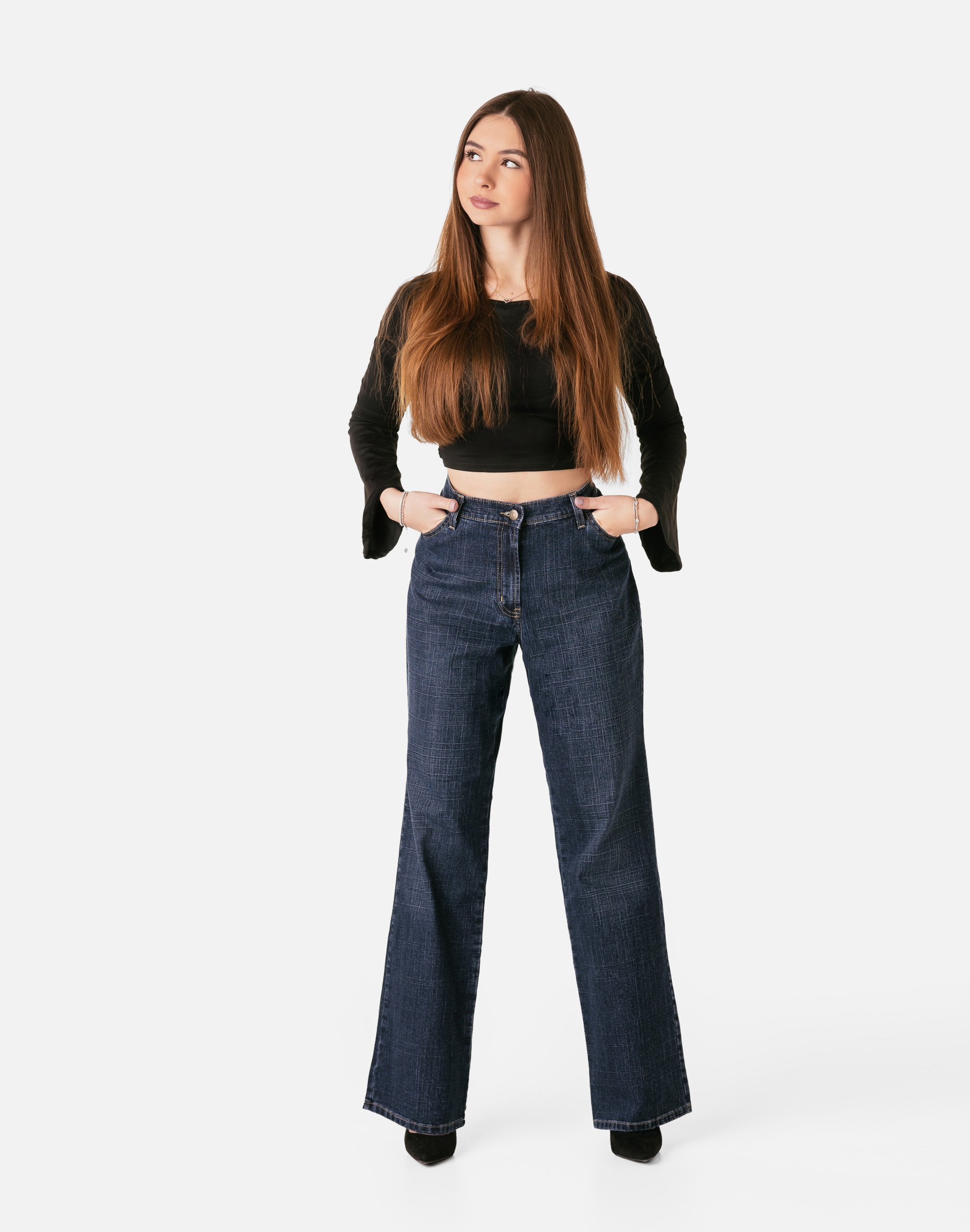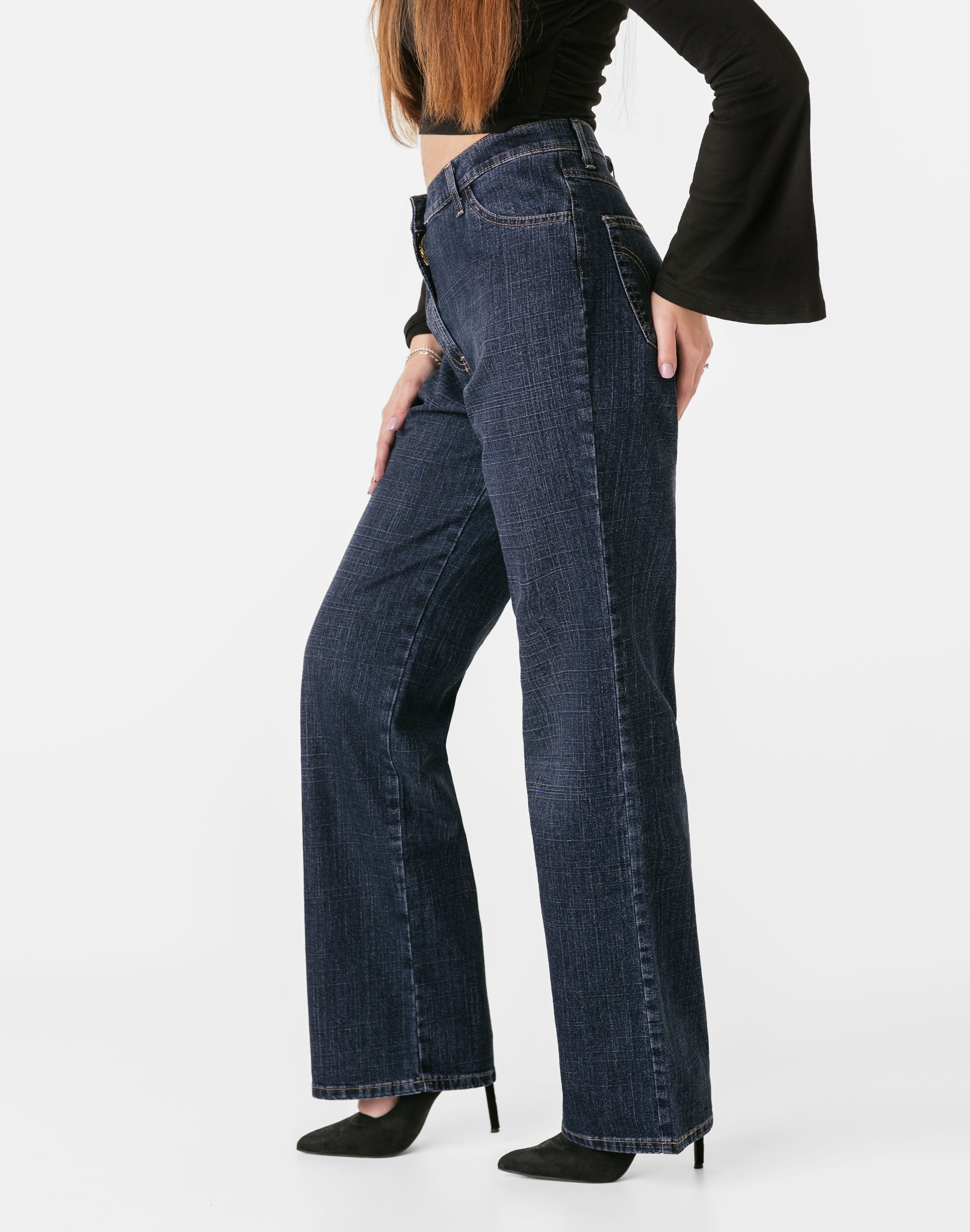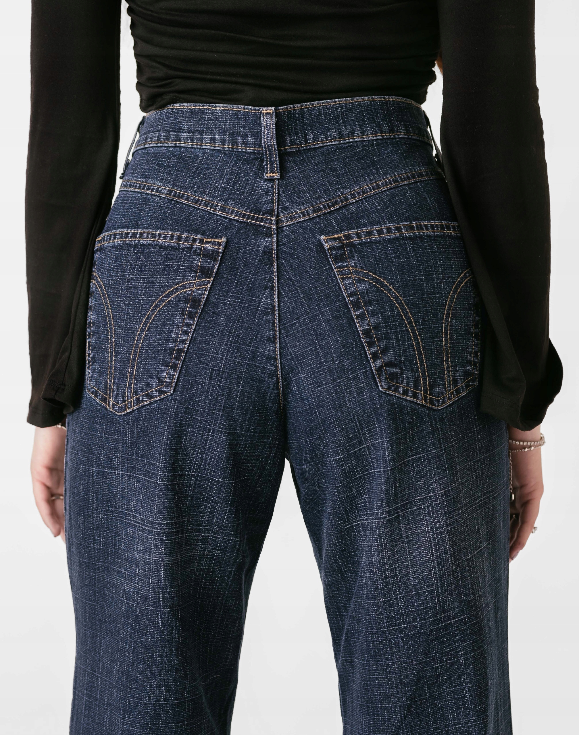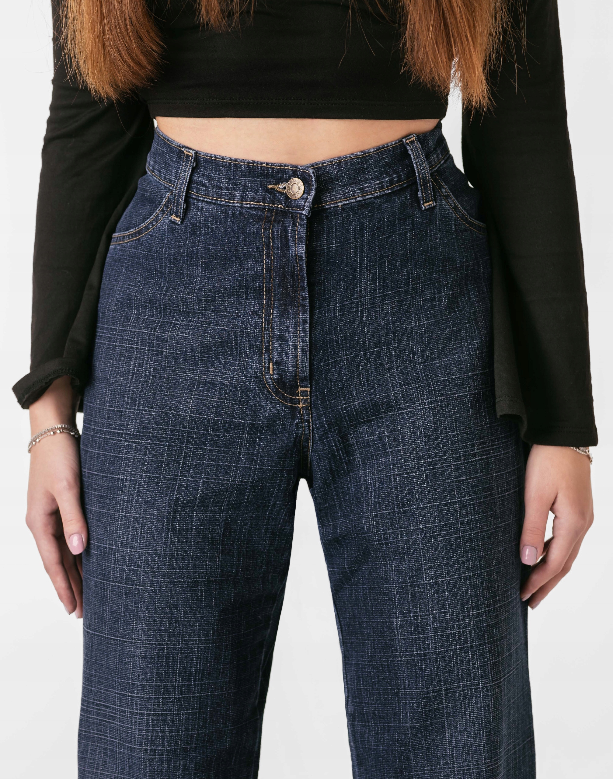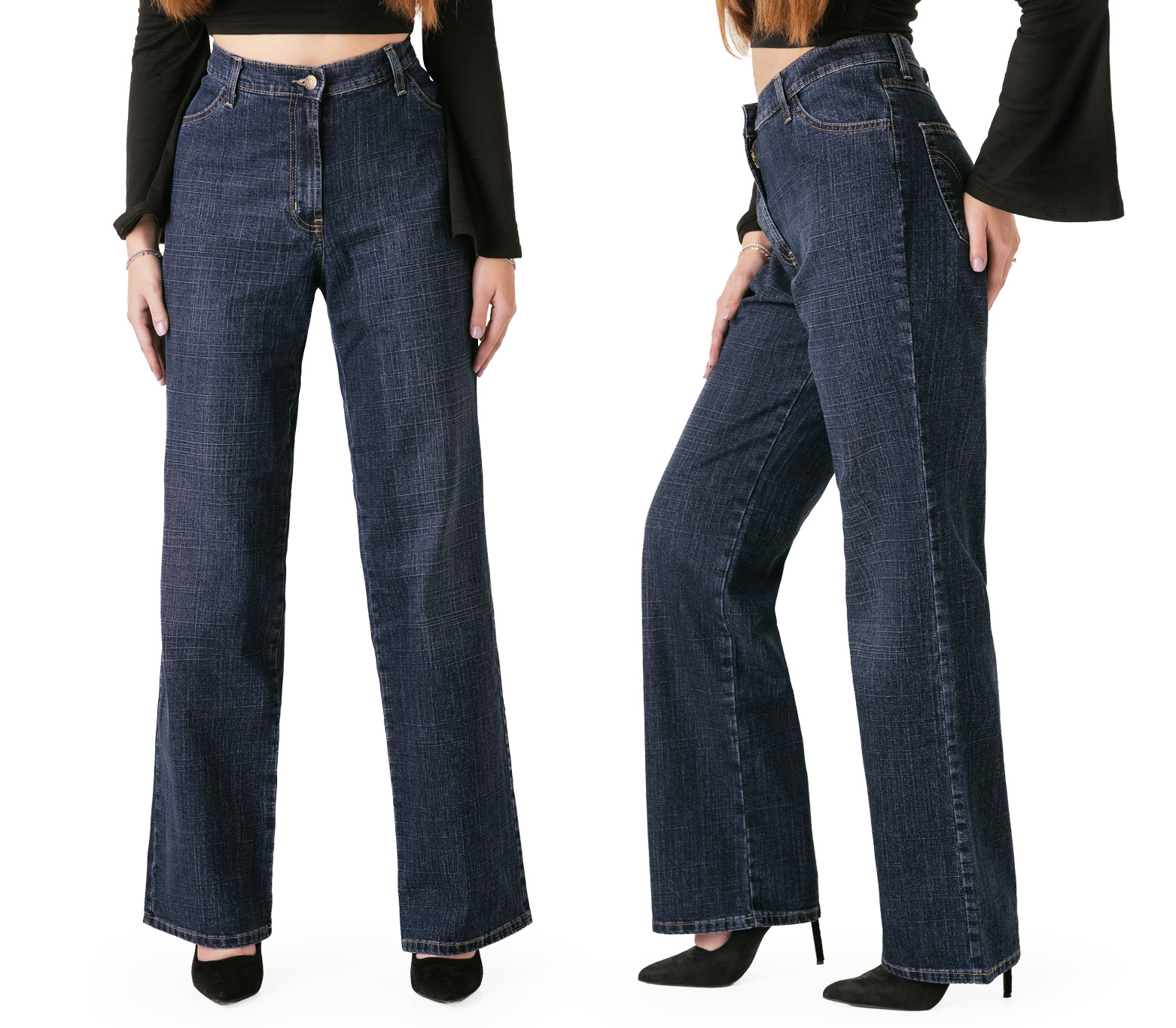 Granatowe Spodnie Jeansy Damskie Prosta Szeroka Nogawka RADER 715/083 86 cm