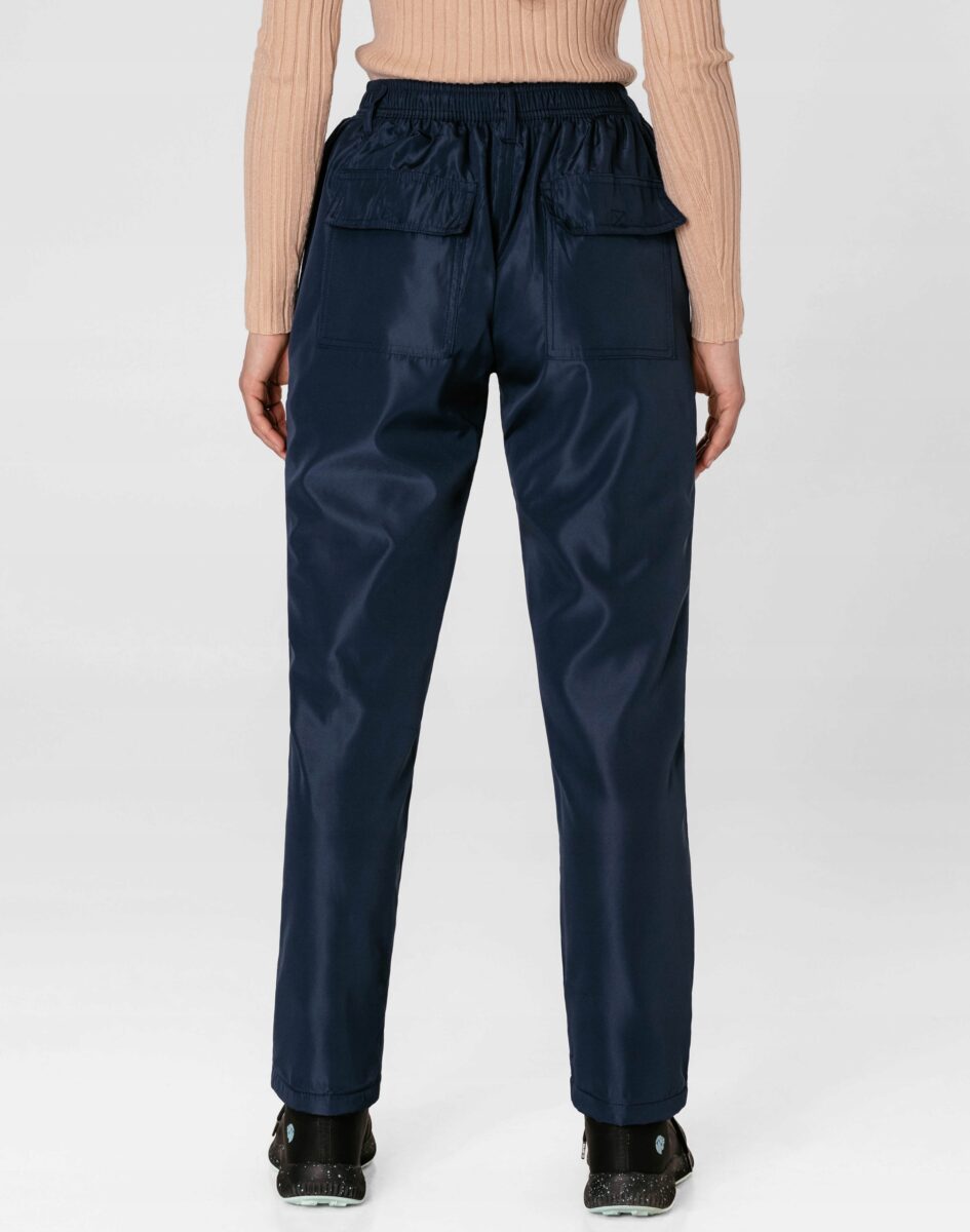 - Szeroki elastyczny ściągacz w pasie z taśmą regulacyjną do zawiązywania