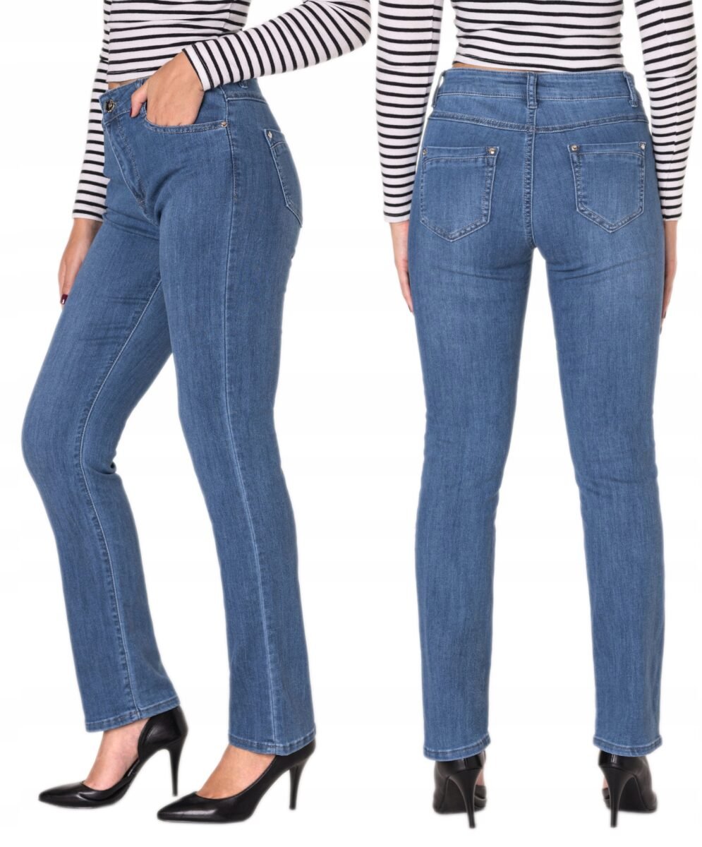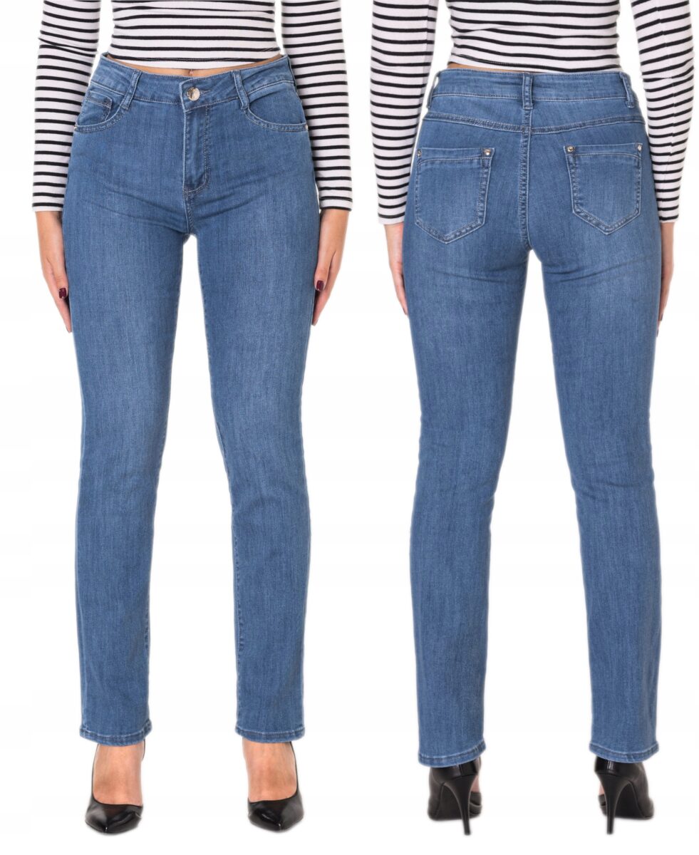 Niebieskie Jeansy Spodnie Damskie Dżinsy Prosta Nogawka Wysoki Stan 3715 35