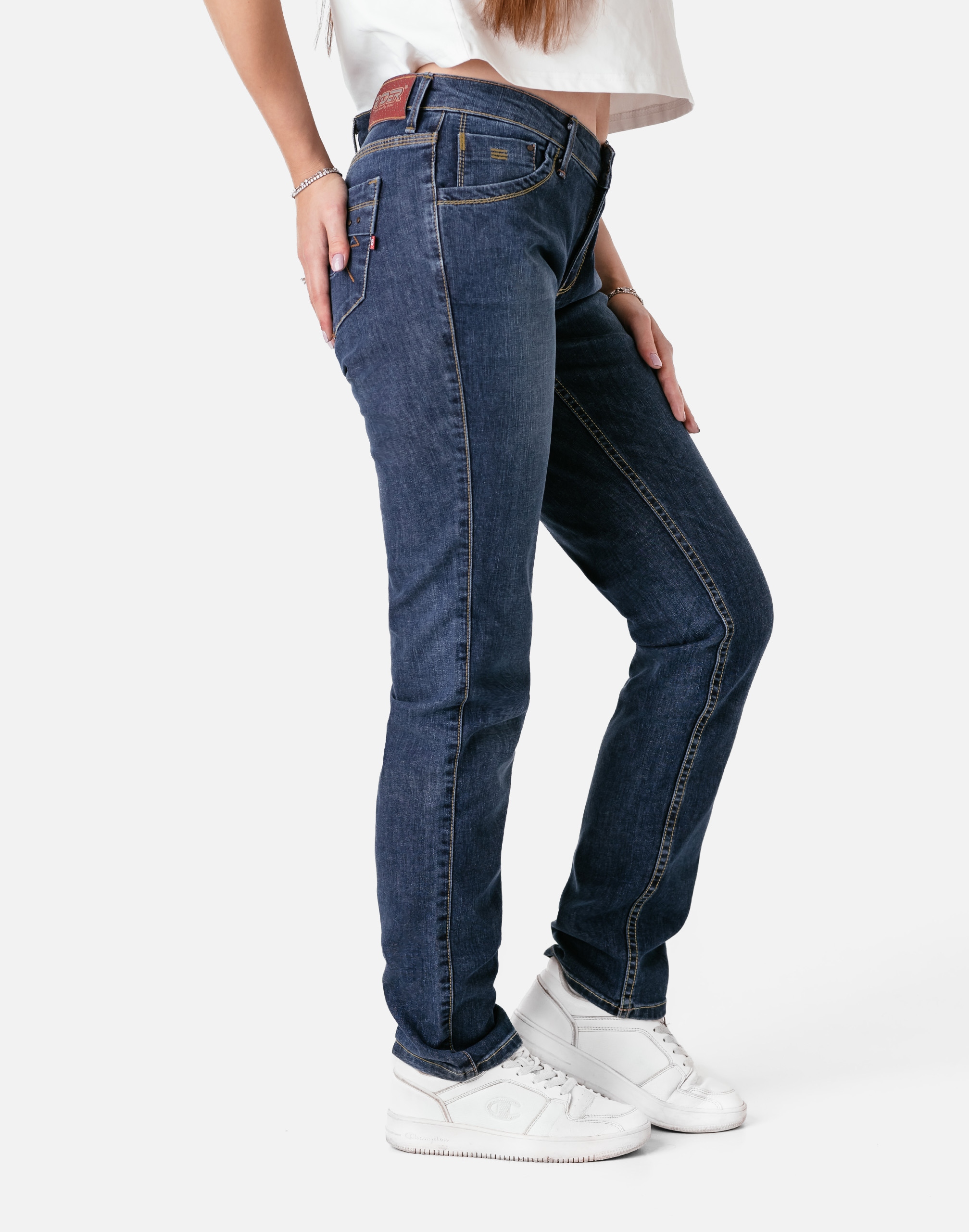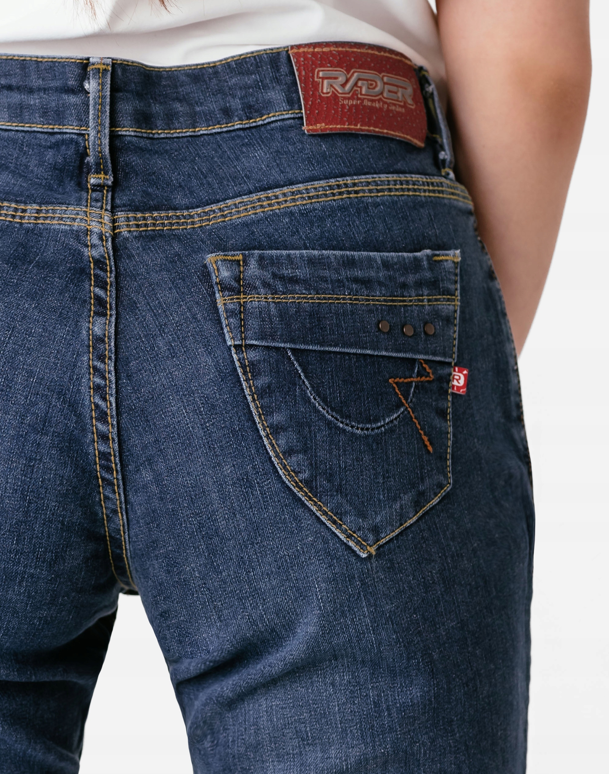 Spodnie jeansy damskie RADER model 772/250# to klasyka wśród klasyki. Wiele innych trendów ulega zmianom, a niebieskie jeansowe spodnie z klasyczną prostą nogawką pozostają, bo trudno o bardziej praktyczny element damskiej garderoby.