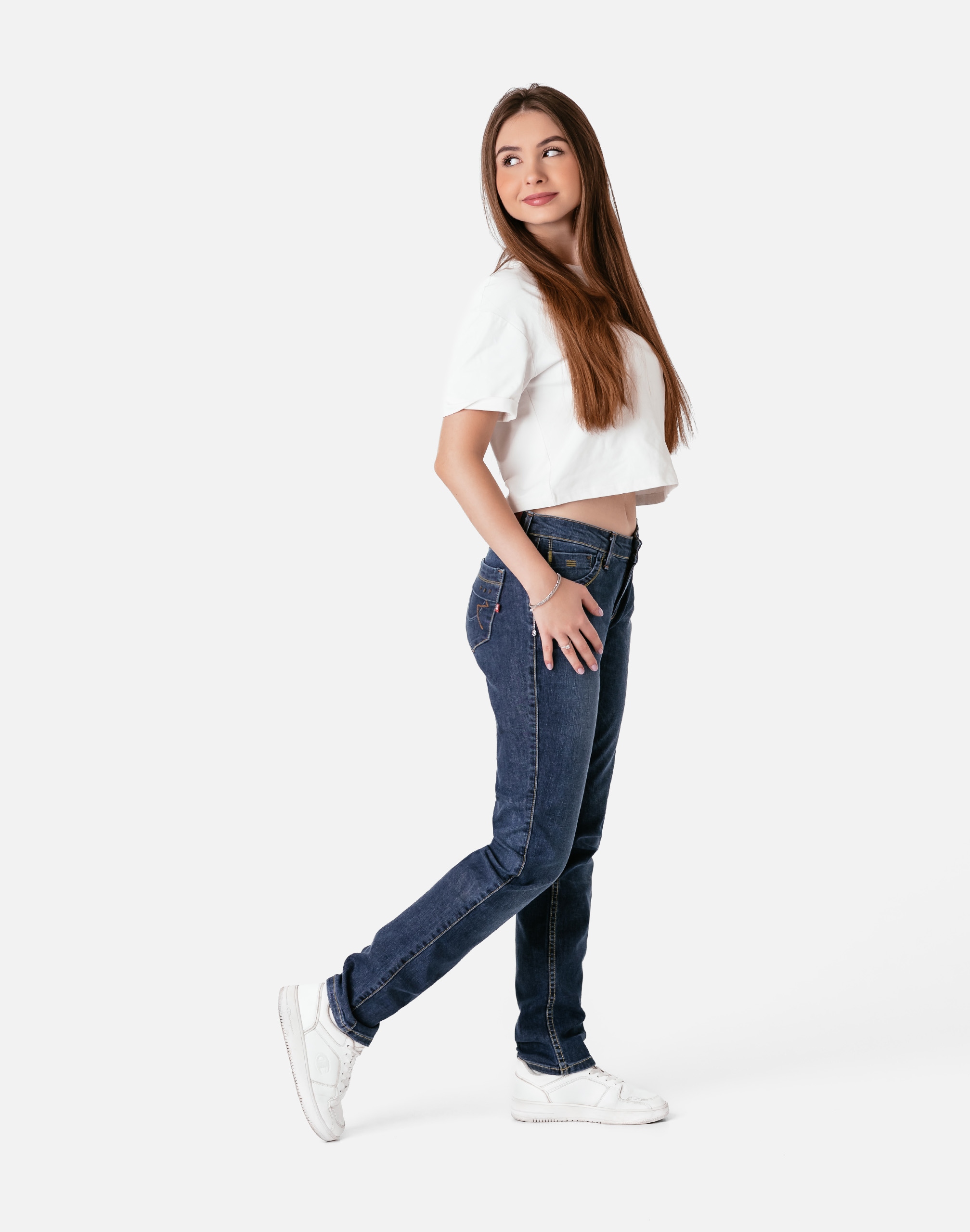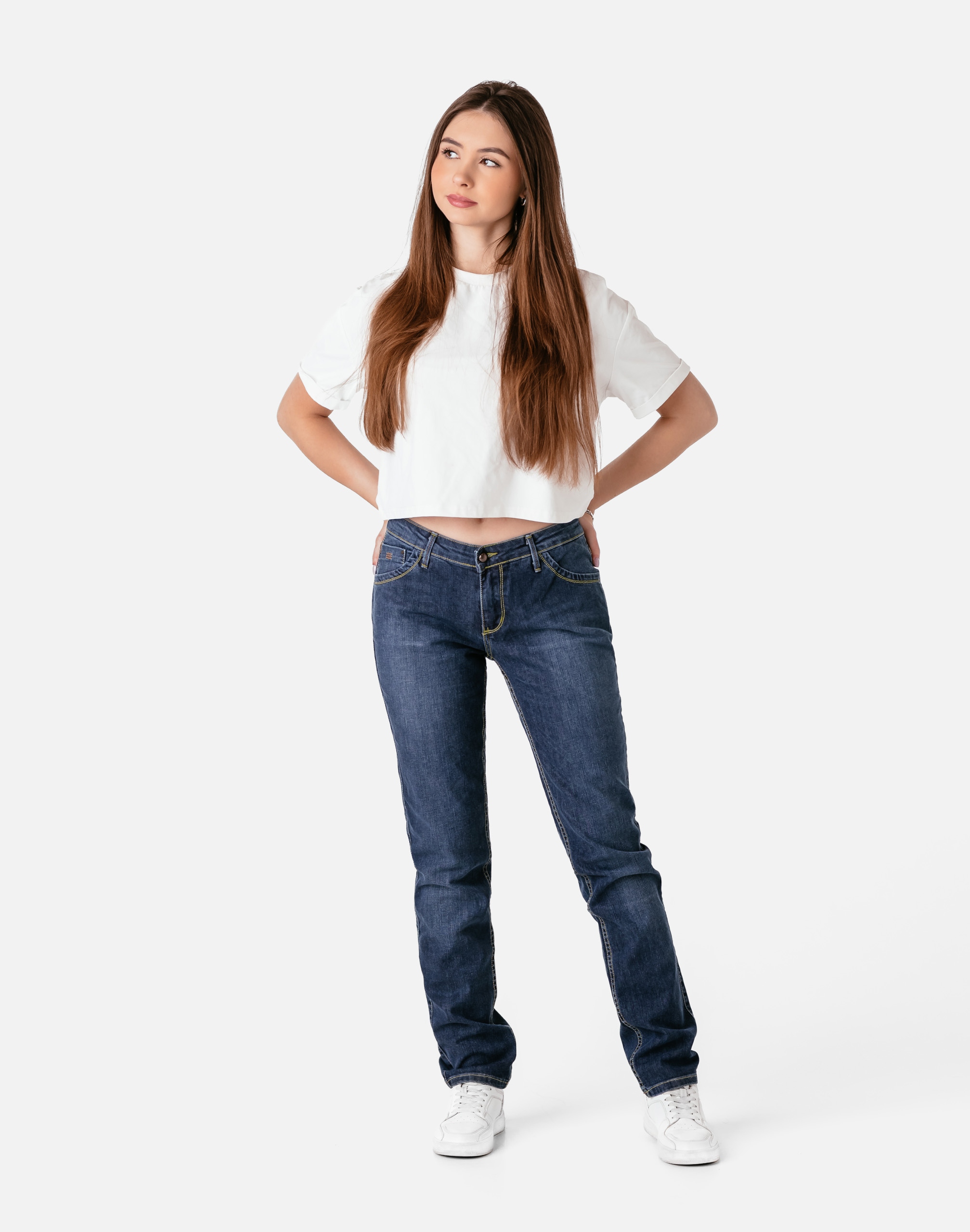 Klasyczne i ponadczasowe spodnie jeansowe damskie model 772/250#, o prostych, smukłych nogawkach to jeden z najczęściej wybieranych przez modne kobiety modeli spodni. Wykonane z wysokiej jakości sprężystej, trwałej i mocnej tkaniny jeansowej średniej grubości dzięki niewielkiemu dodatkowi lycry (stretch) wyjątkowo wygodnej w użytkowaniu. Niewielki dodatek lycry sprawia że spodnie są bardziej elastyczne, dobrze dopasowują się do sylwetki, i są bardzo komfortowe w użytkowaniu. Łatwo się je zakłada i są znacznie wygodniejsze od jeansów, które lycry nie mają. Poza tym bawełna ma tendencję do kurczenia się w praniu, dlatego lycra sprawia, że spodnie są wyjątkowo praktyczne i można je bez problemu założyć po wysuszeniu. Pozwalają na pełną swobodę ruchów, co daje wygodę przy siadaniu i zapewnia ogromny komfort noszenia. Zapinane na kryty zamek błyskawiczny i metalowy guzik sygnowany logiem firmy. Z przodu mają dwie zaokrąglone kieszonki oraz jedną mniejszą tzw. bilonówkę, a na tyle klasyczne naszywane kieszenie jak w typowych spodniach jeansowych. Najbardziej podatne na uszkodzenia miejsca wzmocnione są podwójnymi przeszyciami oraz metalowymi nitami. W pasie szlufki umożliwiające stylizacje z paskiem.