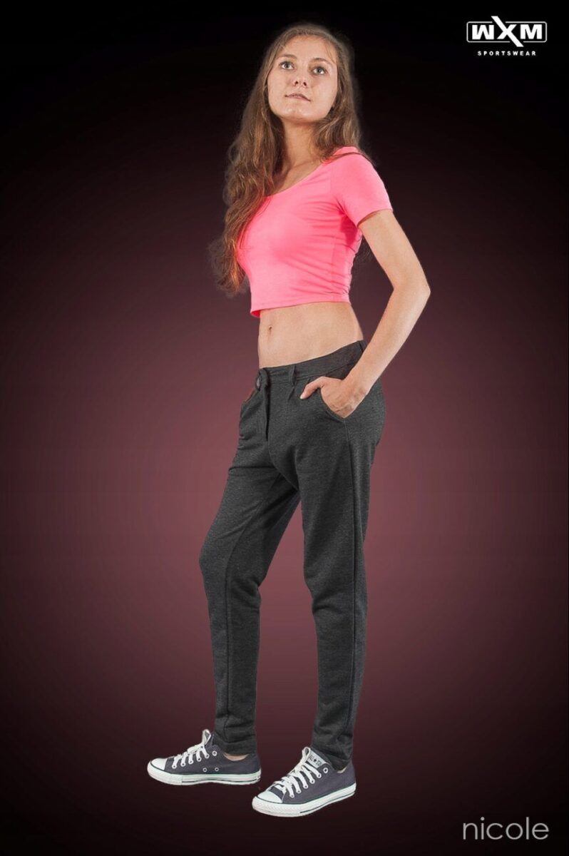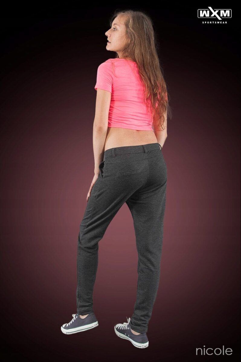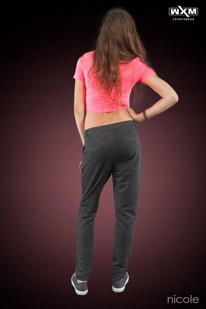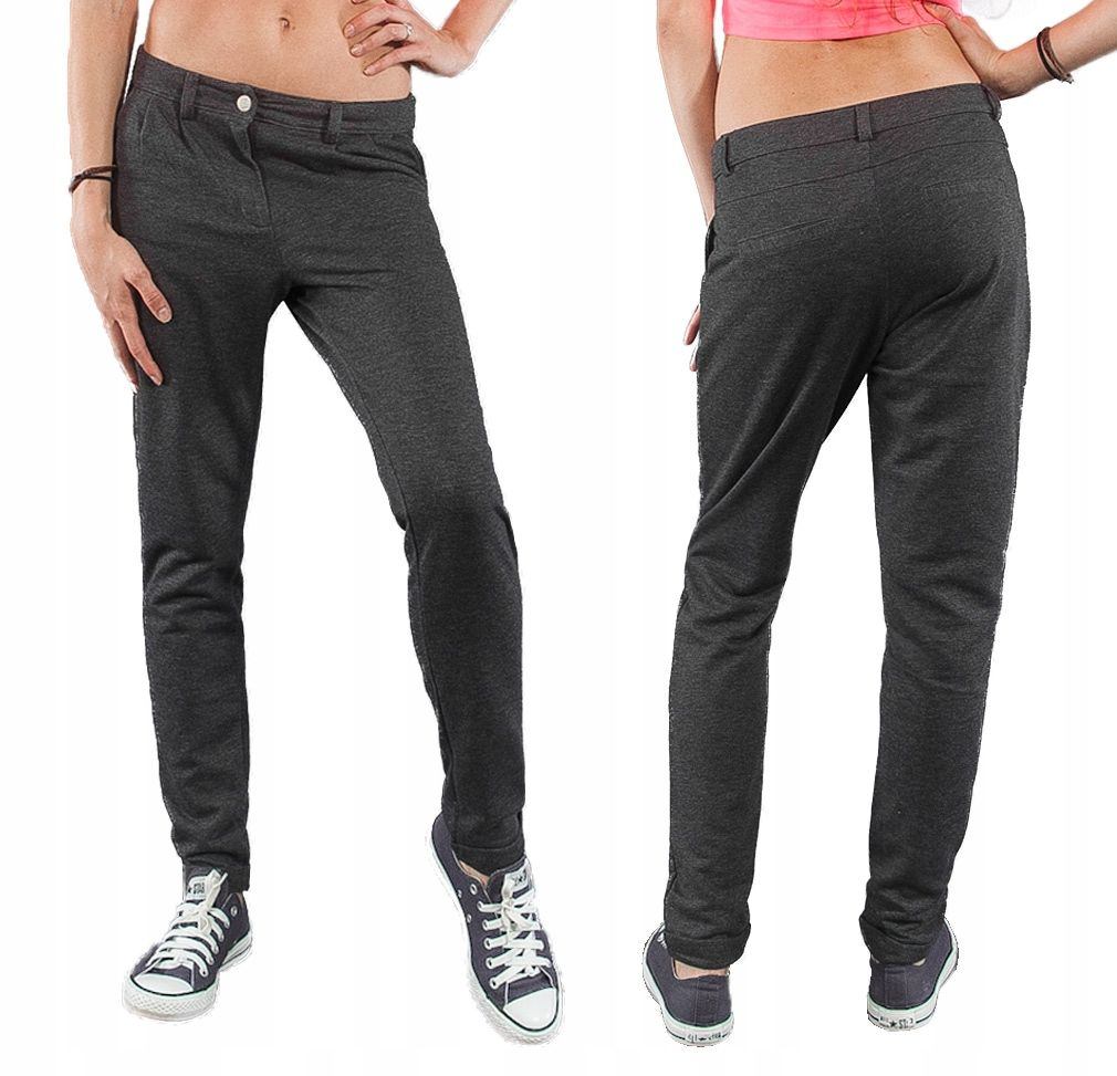 Są miękkie i wygodne jak dresy, a wyglądają jak cygaretki. Uszyte z elastycznej dzianiny 100% bawełnianej wyjątkowo wygodnej w użytkowaniu.  Zastosowana do produkcji spodni wysokiej jakości dzianina pozwala na pełną swobodę ruchów  i zapewnia ogromny komfort noszenia przez cały dzień. Stan podwyższony, zapinane na kryty zamek błyskawiczny i guzik. Charakterystyczne elementy to dwie skośne kieszenie z przodu i imitacje dwóch wpuszczanych kieszeni z tyłu spodni. Nogawka zwężana zakończona mankietem dzięki temu sylwetka wygląda w nich lekko i zgrabnie. W pasie szlufki umożliwiające stylizacje z paskiem.