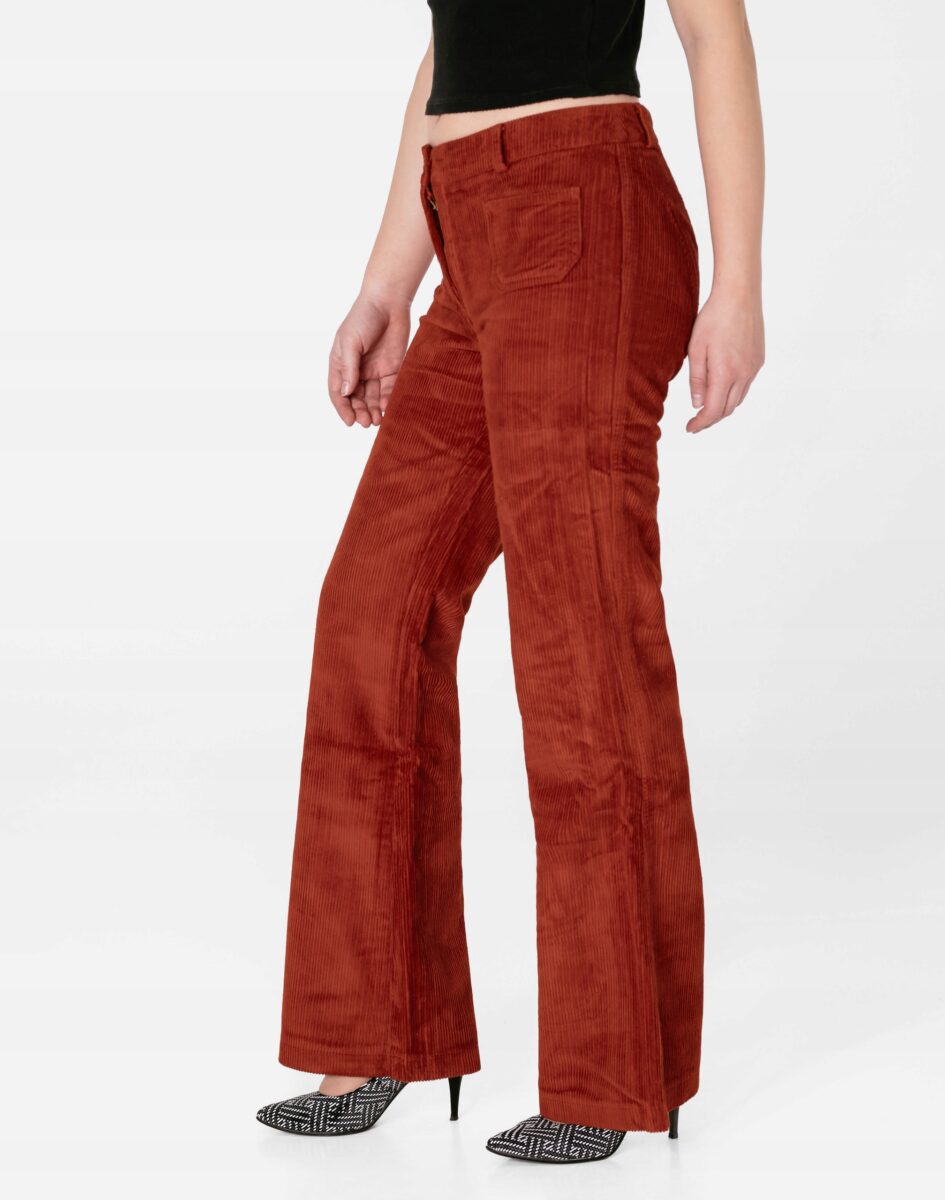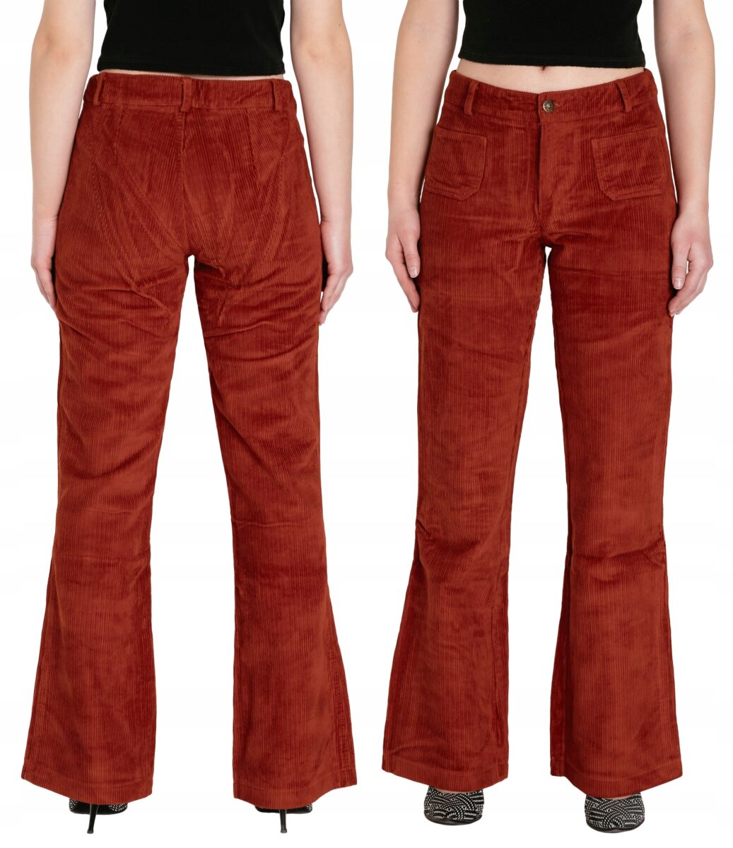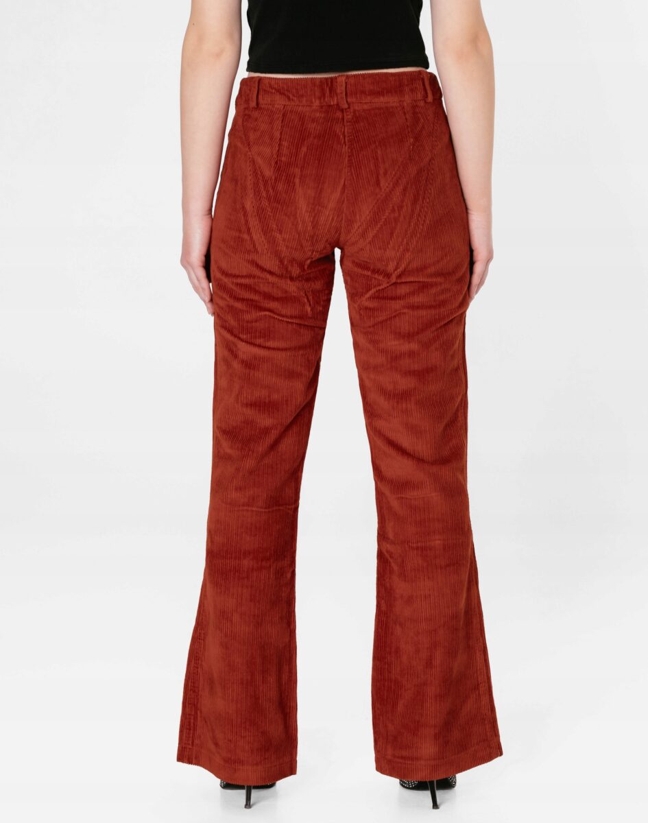 Spodnie sztruksowe polskiej firmy MARGO to powracające do łask sztruksy damskie typu "Dzwony Flare" w kolorze czerwonym o charakterystycznych dla tego modelu rozszerzających się dołem nogawkach i wyższym stanie "High Rise". Wyprodukowane z wysokiej jakości delikatnie elastycznej tkaniny sztruksowej w charakterystyczny drobny prążek, miękkiej i ciepłej, bardzo wygodnej w użytkowaniu, pozwalającej na pełną swobodę ruchów, co daje wygodę przy siadaniu i zapewnia ogromny komfort noszenia. Najmodniejsze w tym sezonie nowoczesne, szerokie nogawki "Flare" to pomysł na stylizację pozwalającą wyeksponować i podkreślić nogi, wyszczuplić sylwetkę oraz co równie ważne pięknie układają się w ruchu.