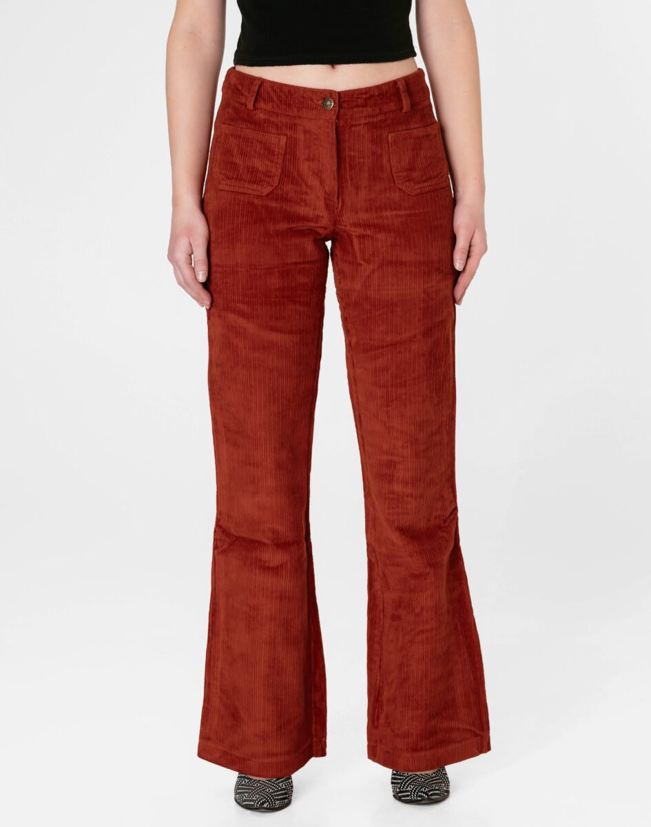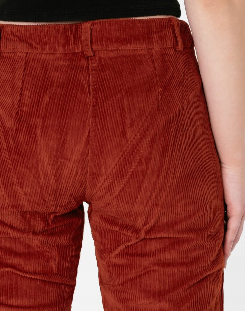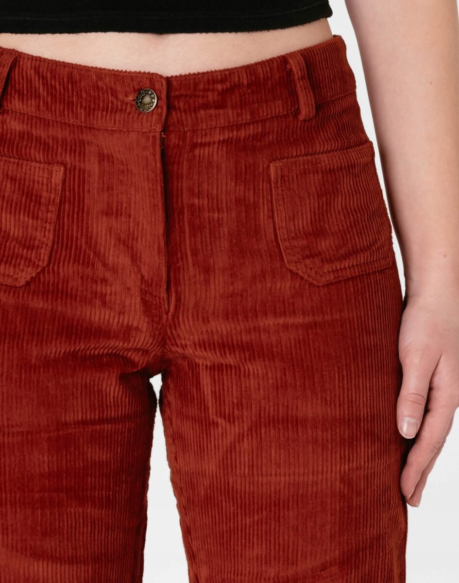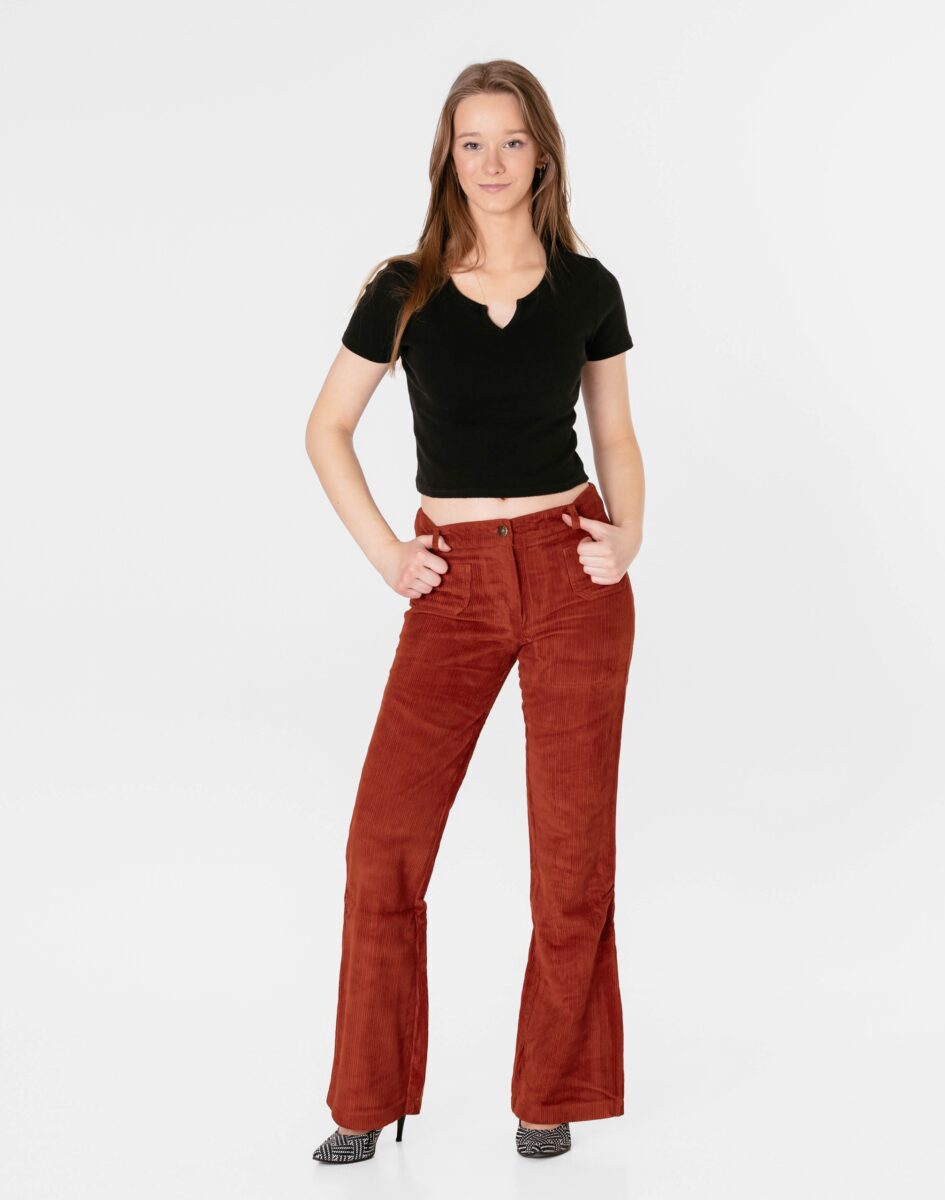 Spodnie sztruksowe polskiej firmy MARGO to powracające do łask sztruksy damskie typu "Dzwony Flare" w kolorze czerwonym o charakterystycznych dla tego modelu rozszerzających się dołem nogawkach i wyższym stanie "High Rise". Wyprodukowane z wysokiej jakości delikatnie elastycznej tkaniny sztruksowej w charakterystyczny drobny prążek, miękkiej i ciepłej, bardzo wygodnej w użytkowaniu, pozwalającej na pełną swobodę ruchów, co daje wygodę przy siadaniu i zapewnia ogromny komfort noszenia. Najmodniejsze w tym sezonie nowoczesne, szerokie nogawki "Flare" to pomysł na stylizację pozwalającą wyeksponować i podkreślić nogi, wyszczuplić sylwetkę oraz co równie ważne pięknie układają się w ruchu.